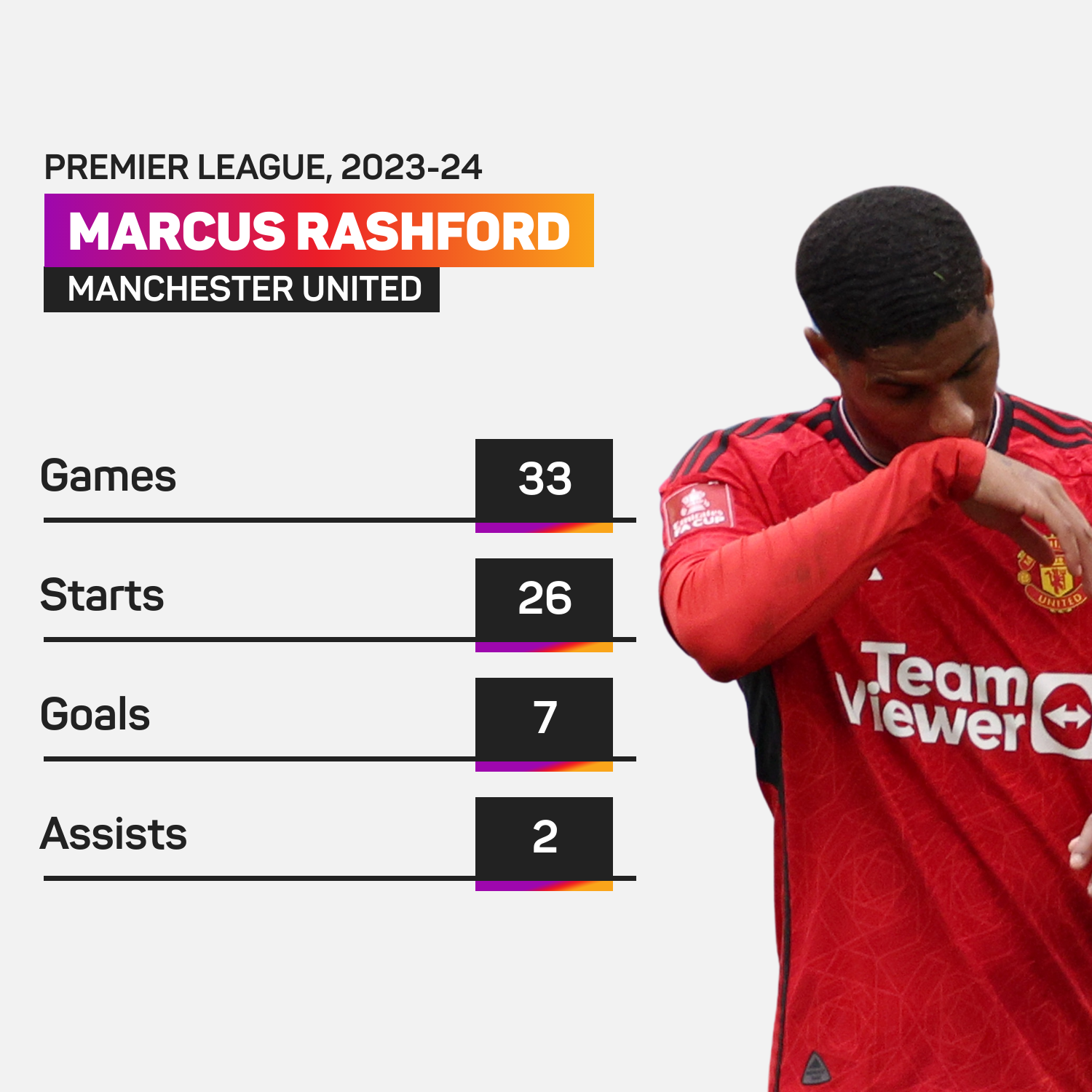 Rashford hanya menyumbangkan tujuh gol dalam 33 penampilan Liga Perdana Inggeris (EPL) dalam musim 2023-24 terumbang-ambing The Red Devils untuk mengakhiri kempen di tempat kelapan -- terendah sejak EPL diperkenalkan pada 1992.