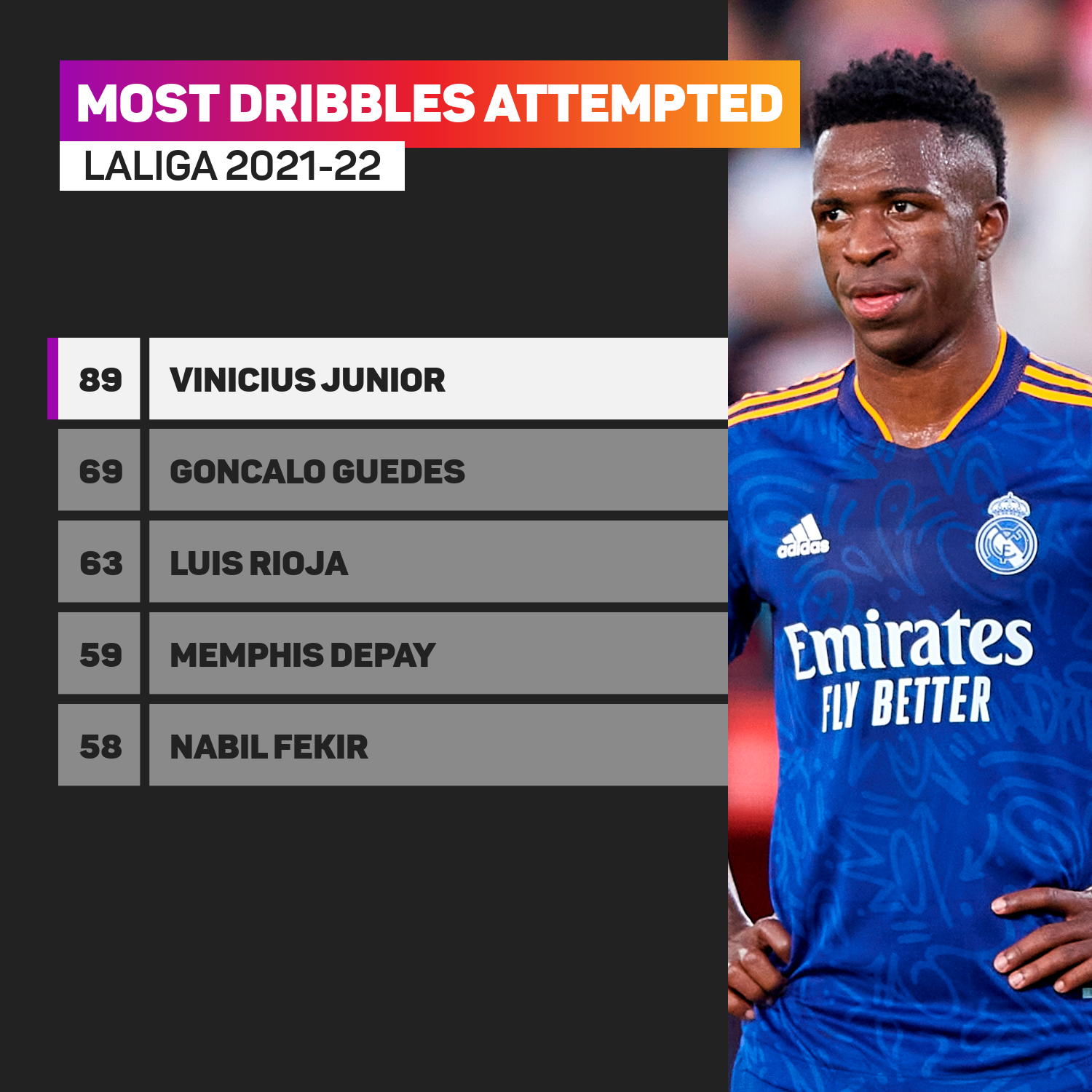 Penyerang itu telah melancarkan 89 percubaan dan menyempurnakan 41 gelecek berbanding pemain lain dalam Liga Juara-Juara untuk berada di belakang tonggak Young Boys, Moumi Ngamaleu (42).