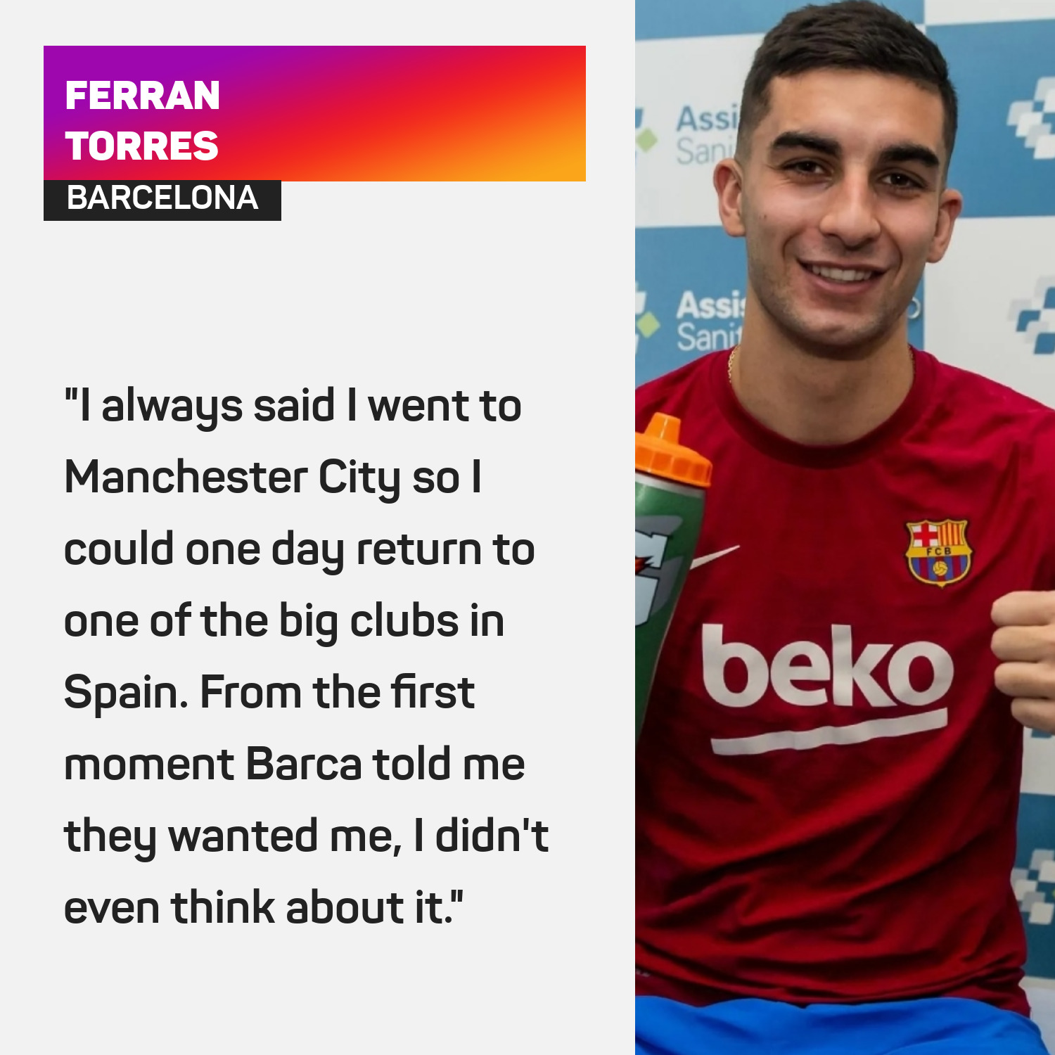 "Kami sedang berusaha untuk memenuhi permintaan barisan kejurulatihan. Hari ini, kami mempunyai pemain yang berasal dari Valencia, Ferran, dan kami berbangga kerana warga Catalan dan Valencia adalah saudara paling rapat.