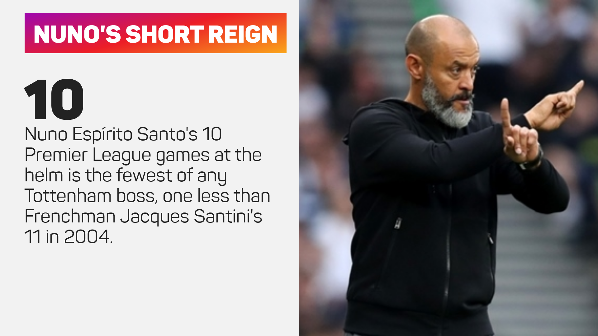 Sebagai rekod, Nuno meninggalkan pasukan itu ketika Spurs berada di tangga kelapan EPL dengan memenangi lima dan tewas lima daripada keseluruhan 10 perlawanan musim ini.
