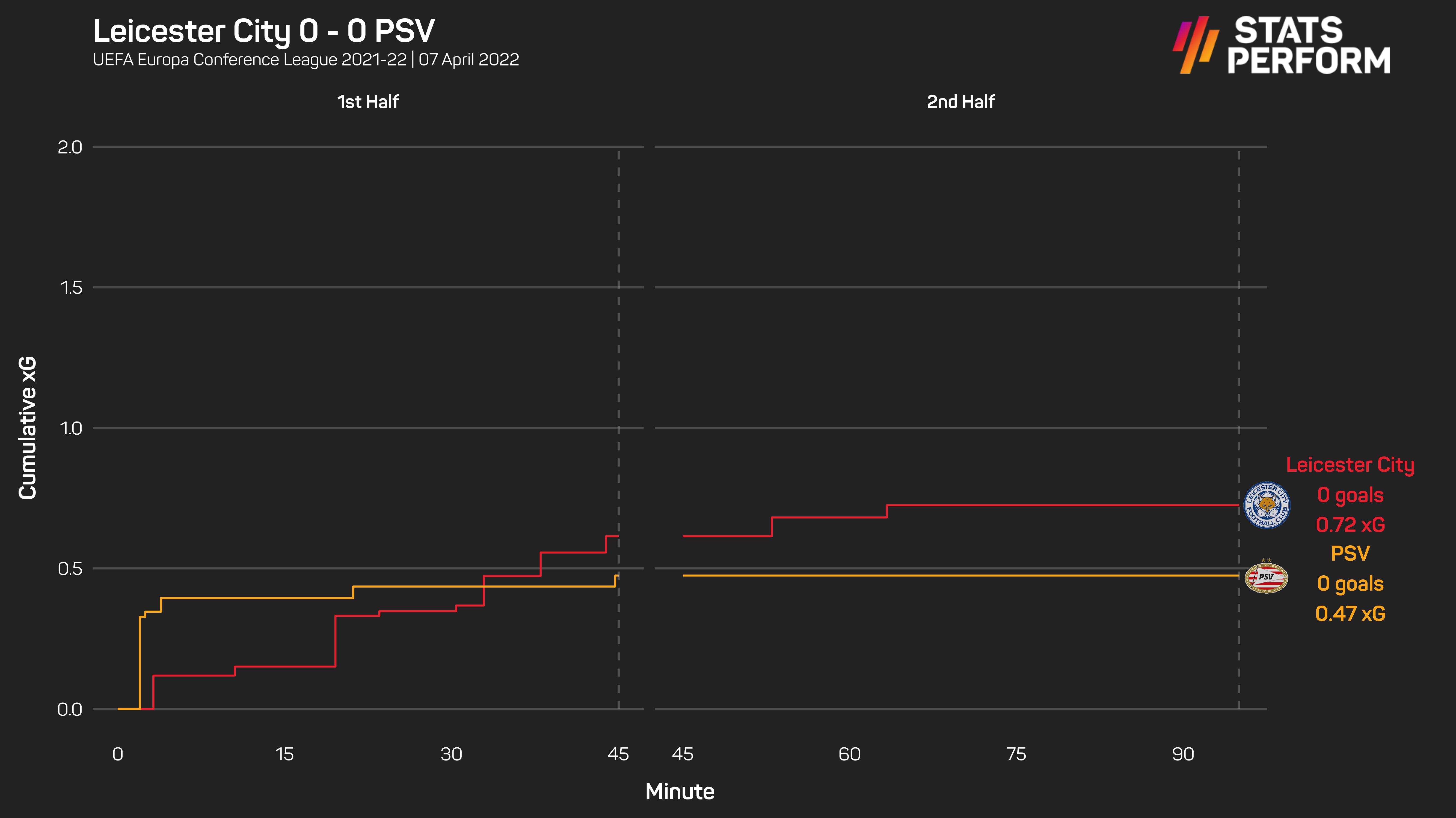 The Foxes gagal menemui jalan keluar dalam 10 percubaan ketika pertembungan pertama suku akhir di Stadium King Power itu dan hanya dua daripadanya menuju tepat ke sasaran sementara PSV sempat menguji Kasper Schmeichel sekali sahaja.
