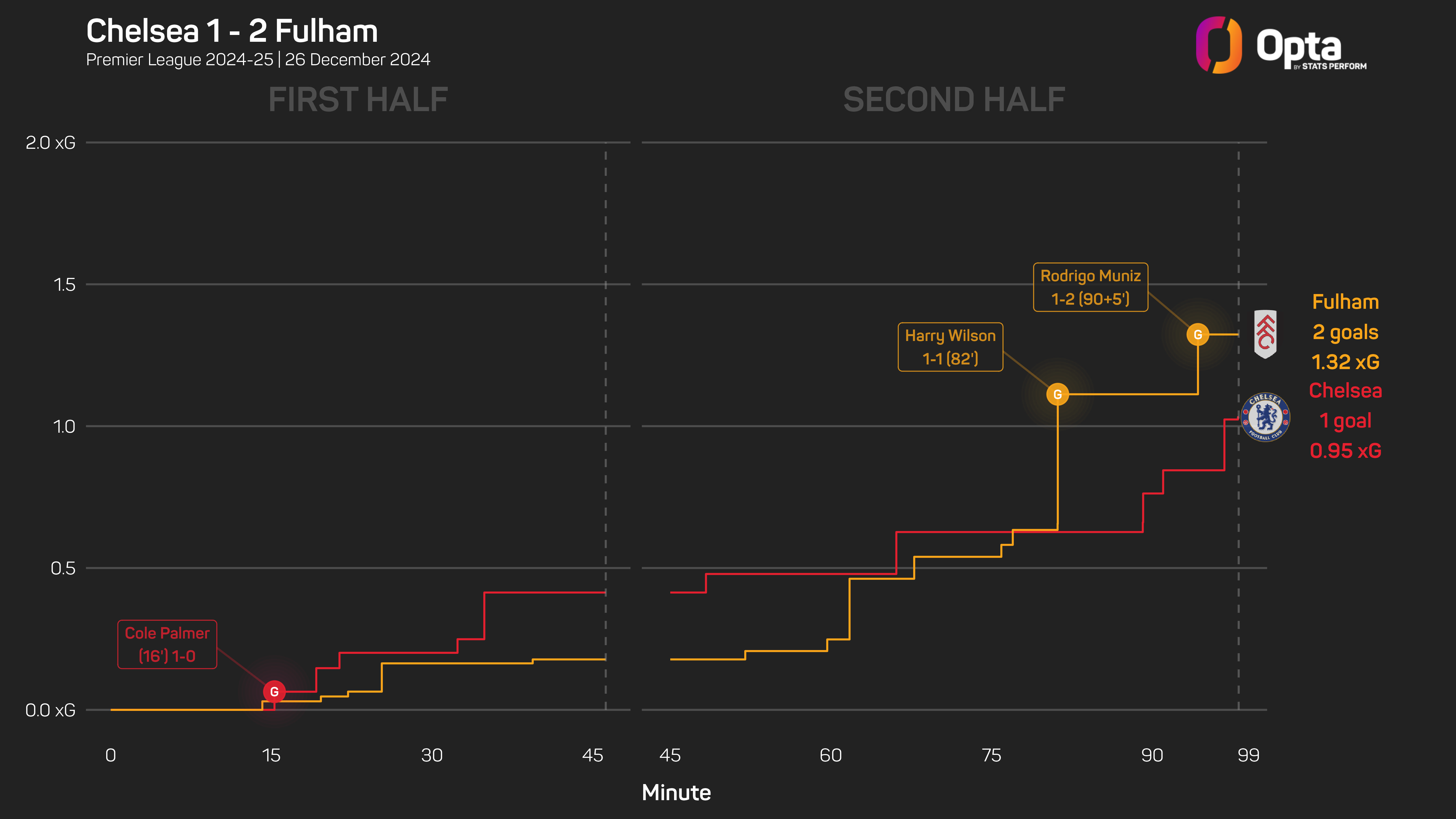 The Blues dikejutkan oleh dua jaringan lewat Fulham apabila pemain gantian, Harry Wilson dan Rodrigo Muniz, meledak gol untuk membatalkan jaringan separuh masa pertama Cole Palmer, sekali gus memberikan kemenangan 2-1 kepada Fulham.