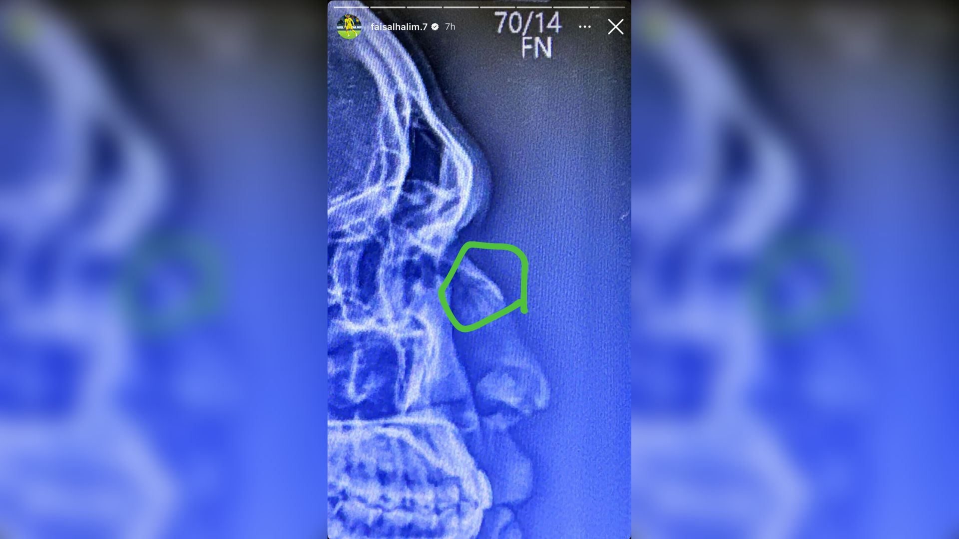 Faisal Halim berkongsi keadaan kecederaan yang dialami menerusi laman sosial Instagram, dan imej menunjukkan bahagian kecederaan yang dialami pemain itu.
