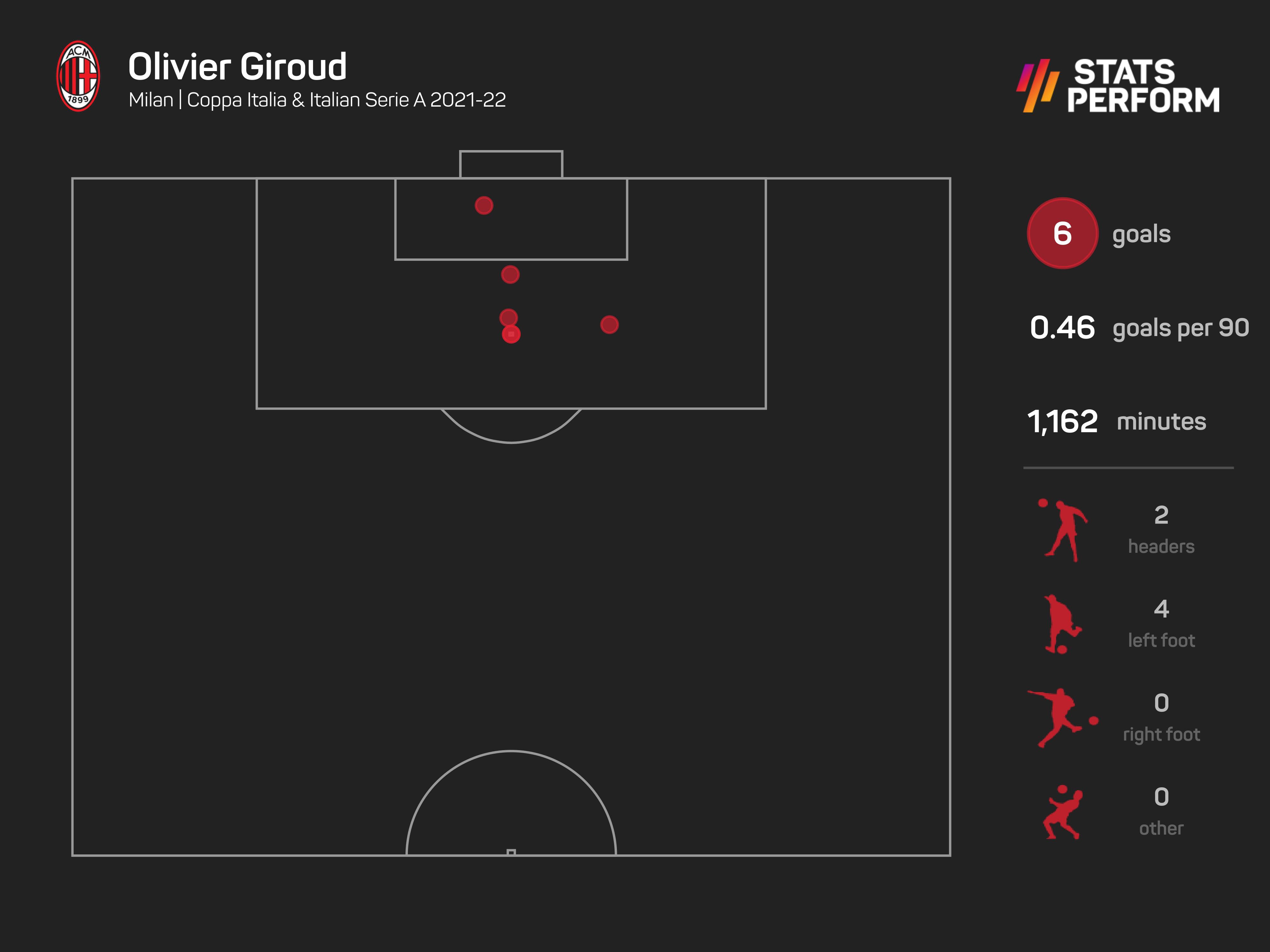 Giroud telah memulakan kehidupan baru di San Siro sejurus meninggalkan Chelsea Julai lalu apabila menghasilkan enam gol dan satu bantuan jaringan dalam 20 penampilan pertamanya, 11 daripadanya dalam barisan utama.