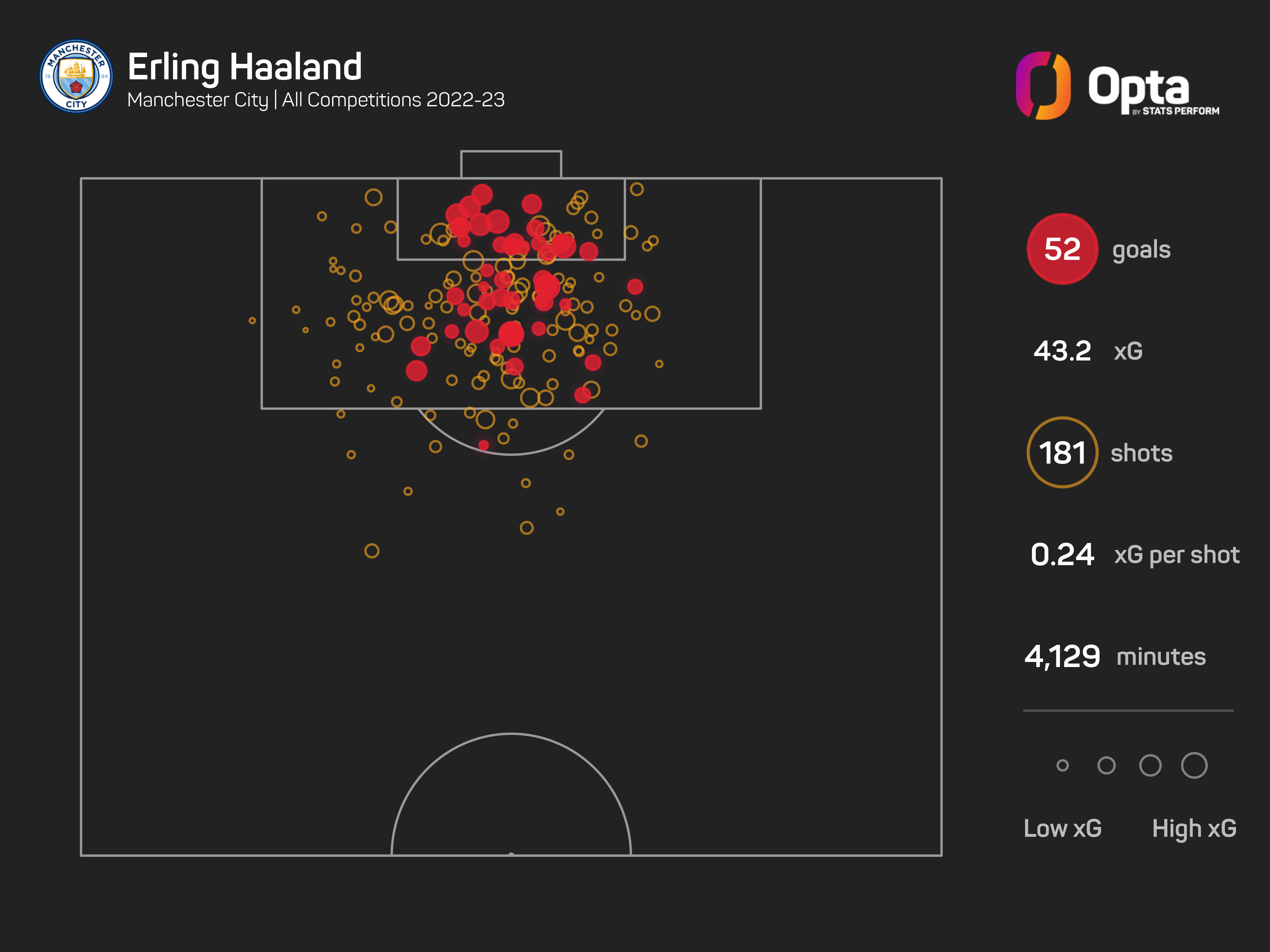 Messi menamatkan saingan di hadapan Erling Haaland -- yang meledak 52 gol pada musim pertamanya di Manchester City -- dan bekas rakan sekelabnya, Kylian Mbappe, yang memainkan peranan langsung dalam 50 gol buat PSG dan merupakan penjaring terbanyak Piala Dunia.