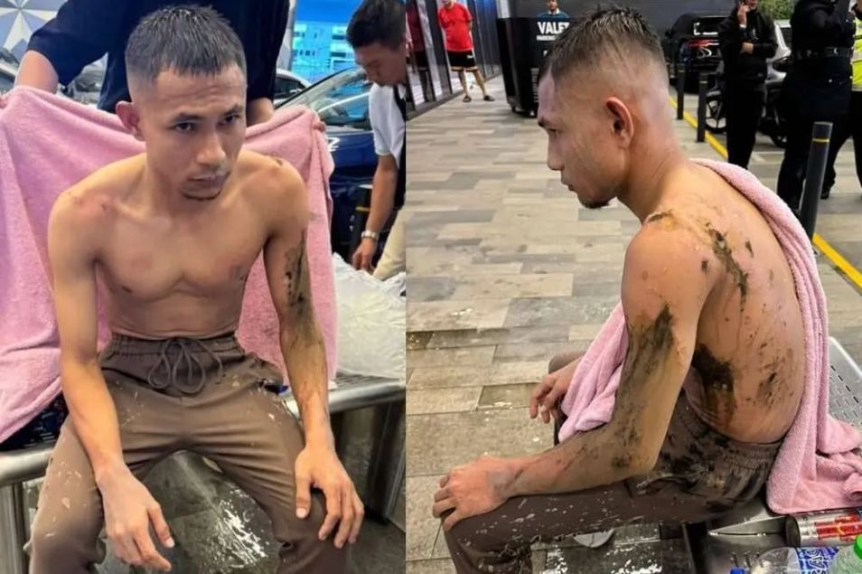 Dua individu menggunakan motosikal curi sempat mengucapkan 'good luck' sebelum menyimbah Faisal dengan cecair dipercayai asid sulfurik pekat.