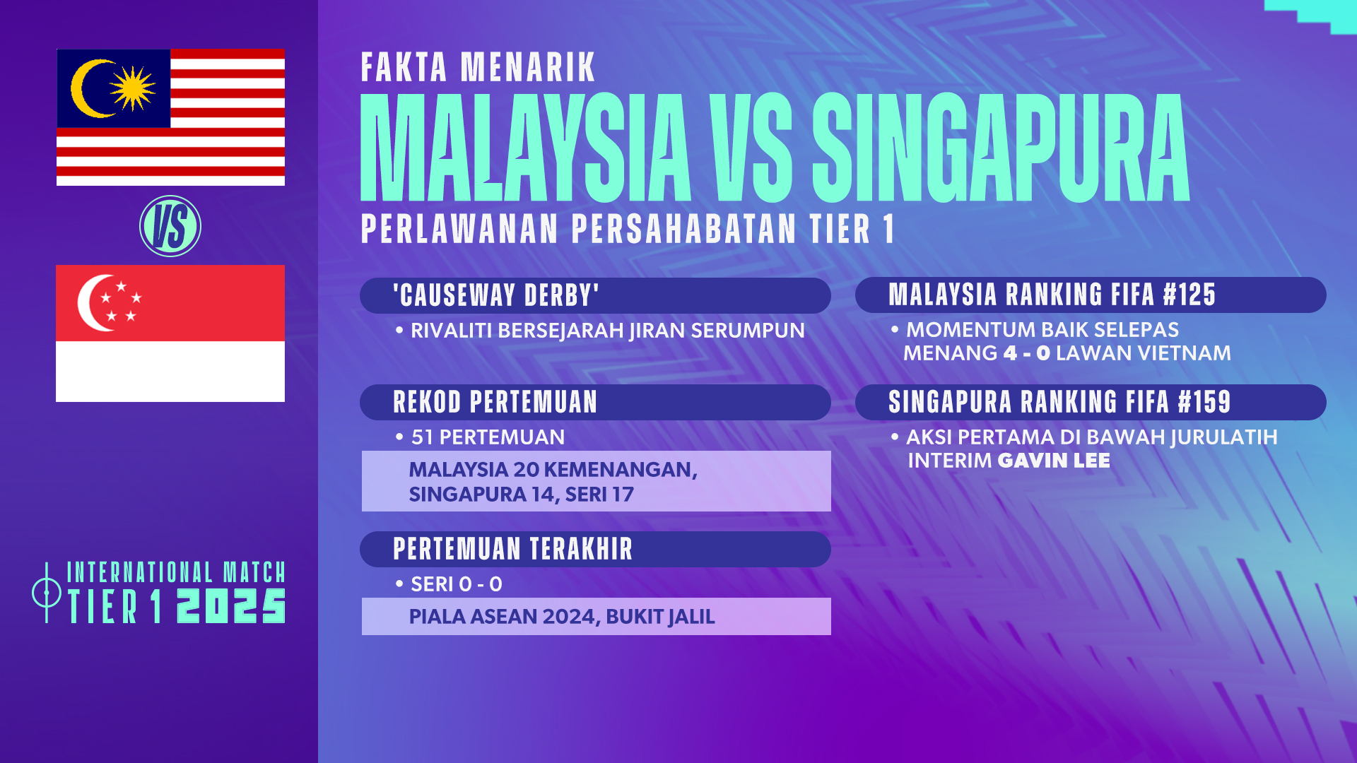 Menjelang aksi persahabatan tier 1 antara Malaysia dan Singapura di Stadium Nasional Bukit Jalil, ini fakta menarik tentang pertembungan Causeway Derby.