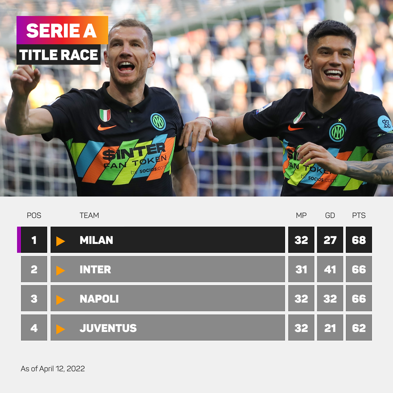 Inter kini berada di tangga kedua liga, mendahului Napoli dengan perbezaan jaringan dan ketinggalan dua mata di belakang Milan tetapi mempunyai kelebihan satu perlawanan dalam tangan dan beza jaringan yang lebih baik.