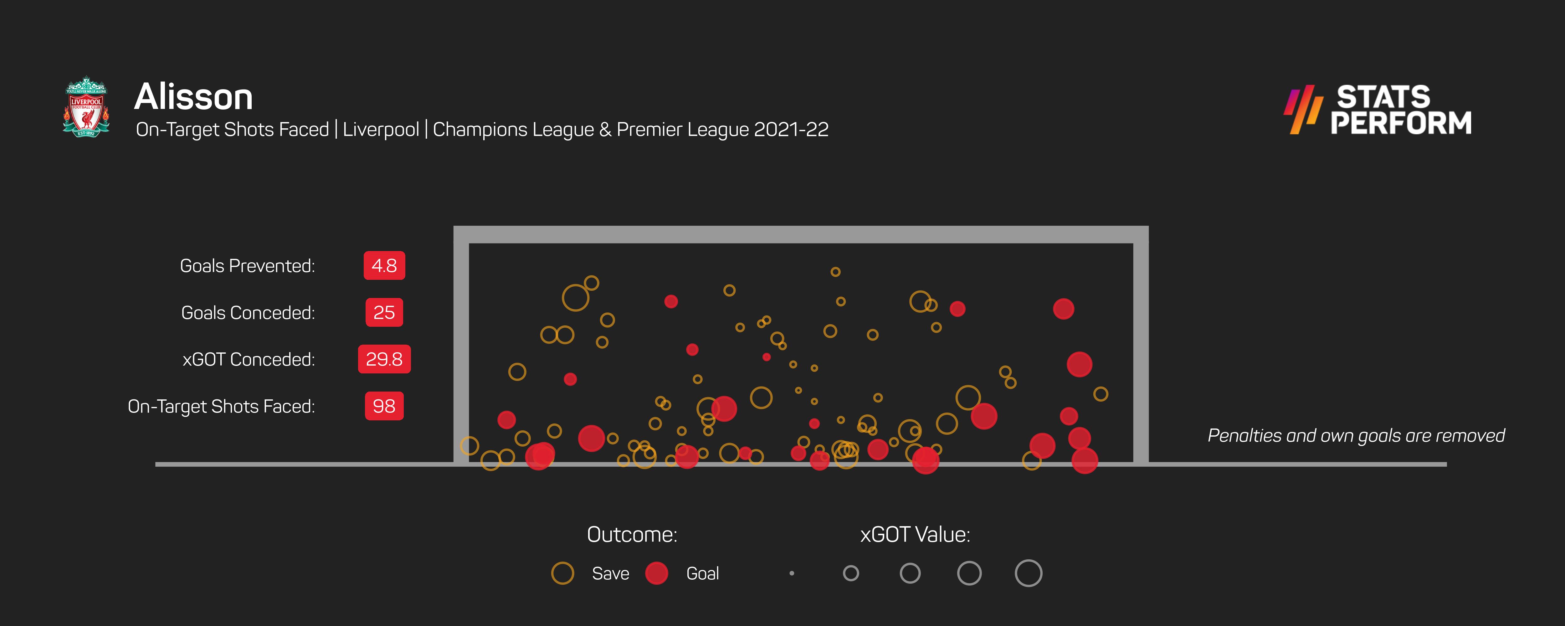 Musim ini, kedua-dua penjaga gol telah beraksi di tahap yang sama tinggi. Alisson telah melakukan 60 penyelamatan dalam liga daripada 78 percubaan tepat dengan prestasi 76.9 peratus, manakala Ederson pula mematahkan 50 percubaan dan mencatat peratusan menyelamat setinggi 72.3 peratus.