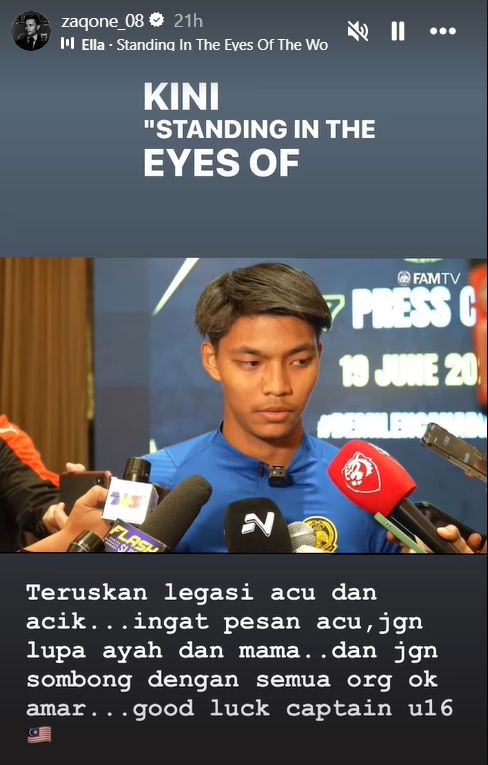 Maka tidak hairanlah Zaquan Adha, yang kini bersama keluarga Astro Arena, berkongsi rasa bangga dan terujanya terhadap pencapaian Amar Imran dan sempat menitipkan beberapa pesanan menerusi posting di IG Story peribadinya, termasuk mengingatkan pemain berusia 16 tahun itu agar tidak sombong.