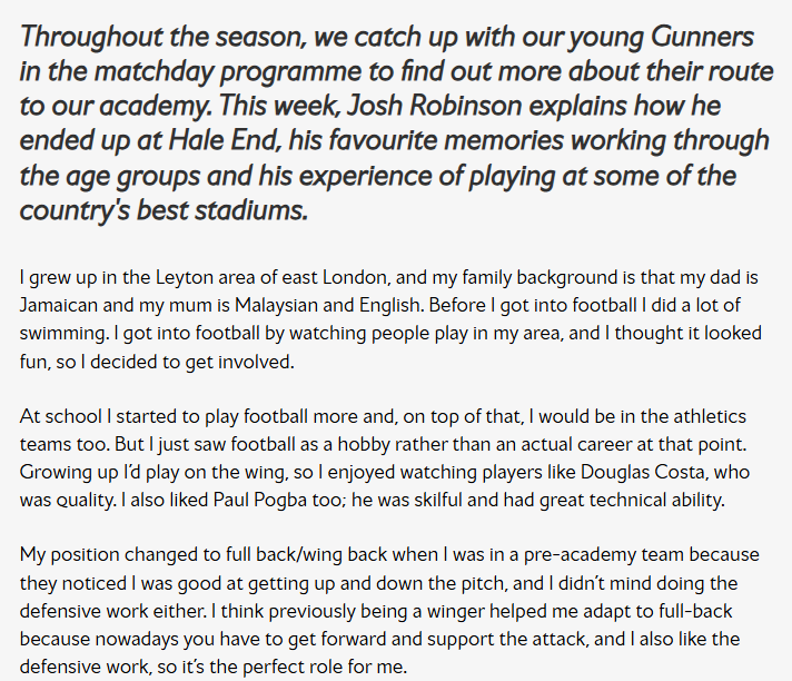 Pemain pertahanan berusia 21 tahun itu dalam satu temu bual sebelum ini di laman rasmi pasukan bola sepak Liga Perdana Inggeris (EPL), Arsenal, berkongsikan latar belakang keluarganya yang berasal daripada Jamaica, Malaysia dan Inggeris.