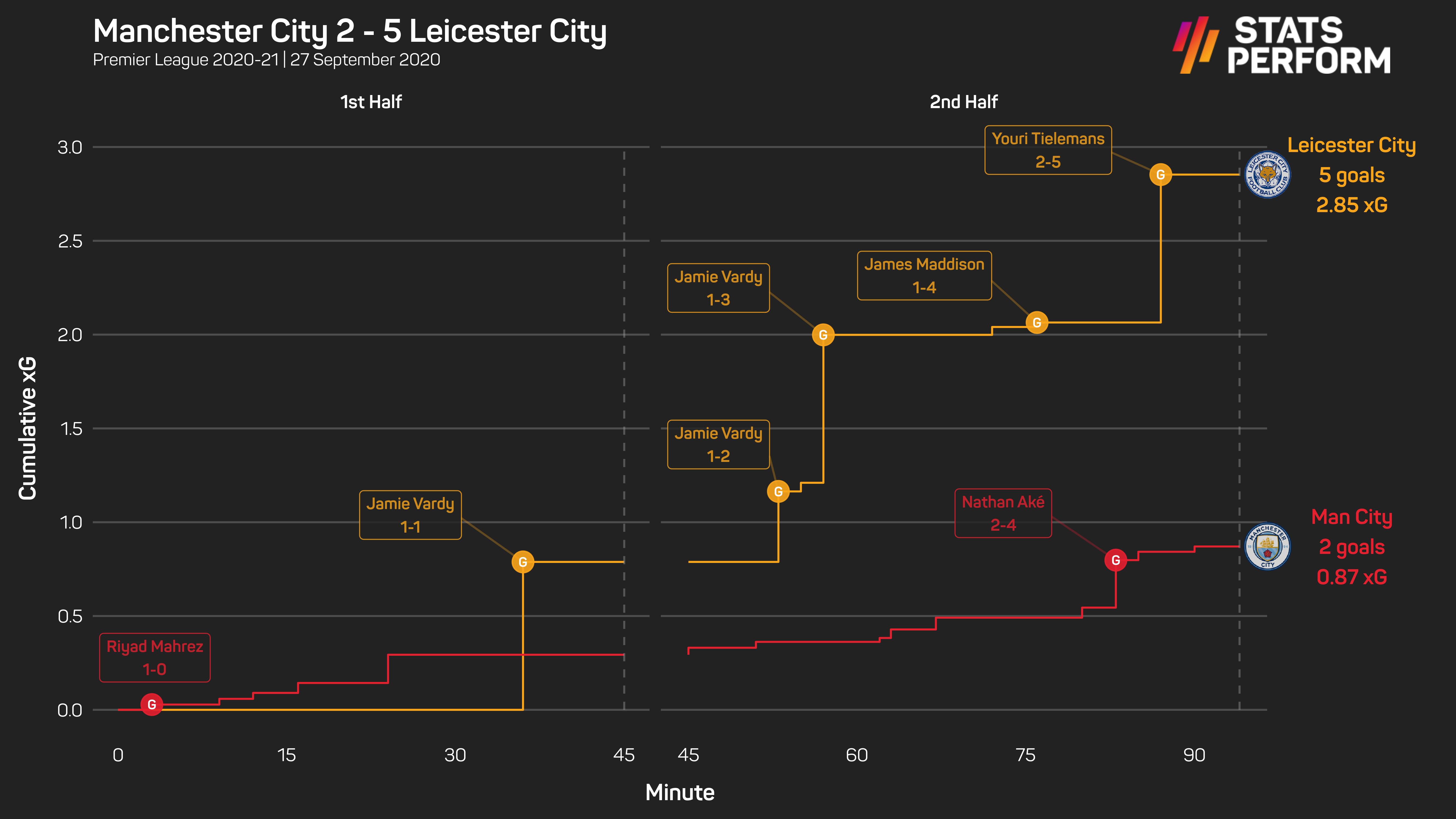 City telah memenangi lapan perlawanan berturut-turut untuk mendahului liga dengan kelebihan tiga mata ke atas pencabar terdekat, Liverpool, sementara Leicester menduduki tangga kesembilan selepas permulaan kempen yang goyah.