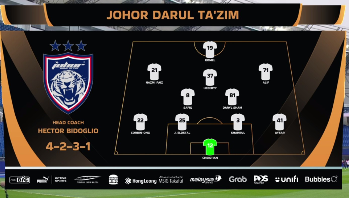 JDT menaruh barisan kedua sambil lima pemain tengah yang diketuai Safiq Rahim bagi mengimbangi peranan Daryl Sham dan Alif Mutalib