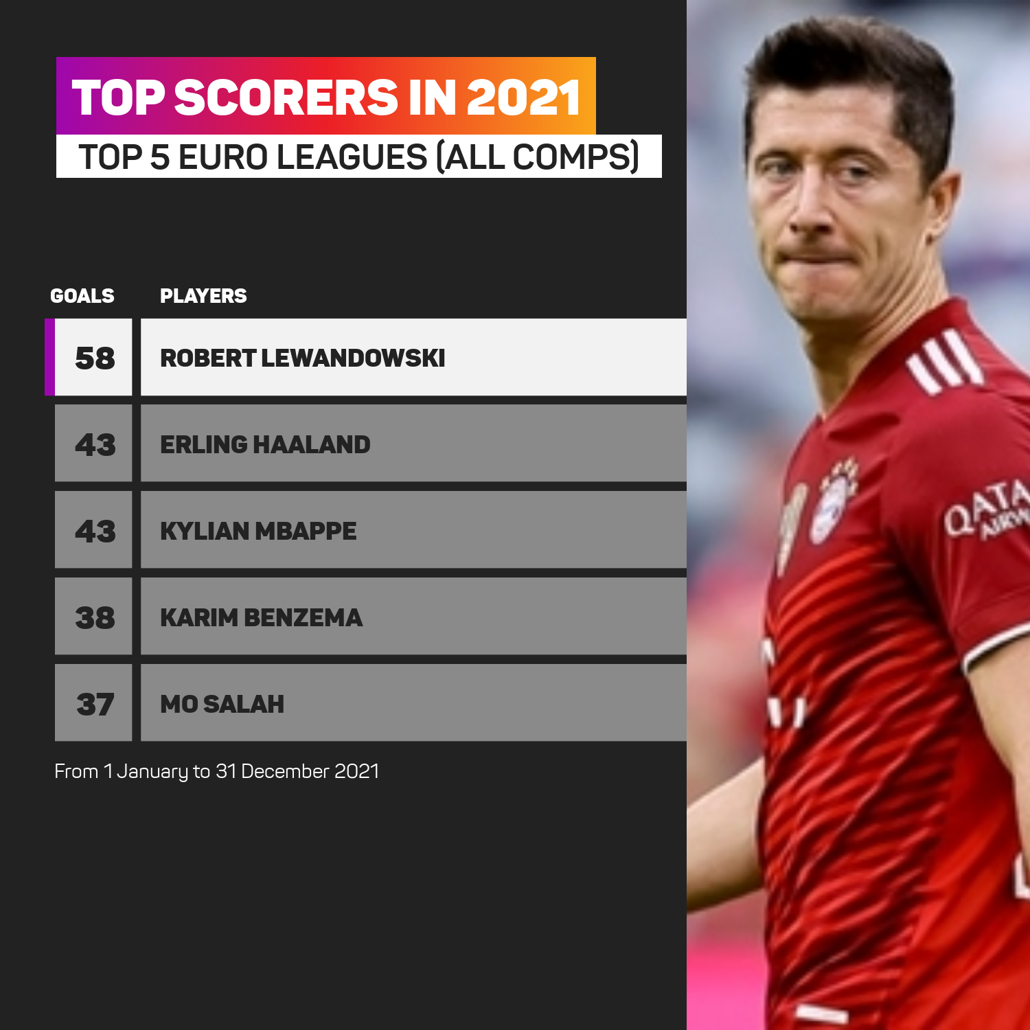 Lewandowski menjaringkan 58 gol dalam 47 perlawanan dalam sepanjang 2021 termasuk mengatasi dua rekod lama yang pernah dipegang oleh penyerang legenda Jerman, Gerd Muller.