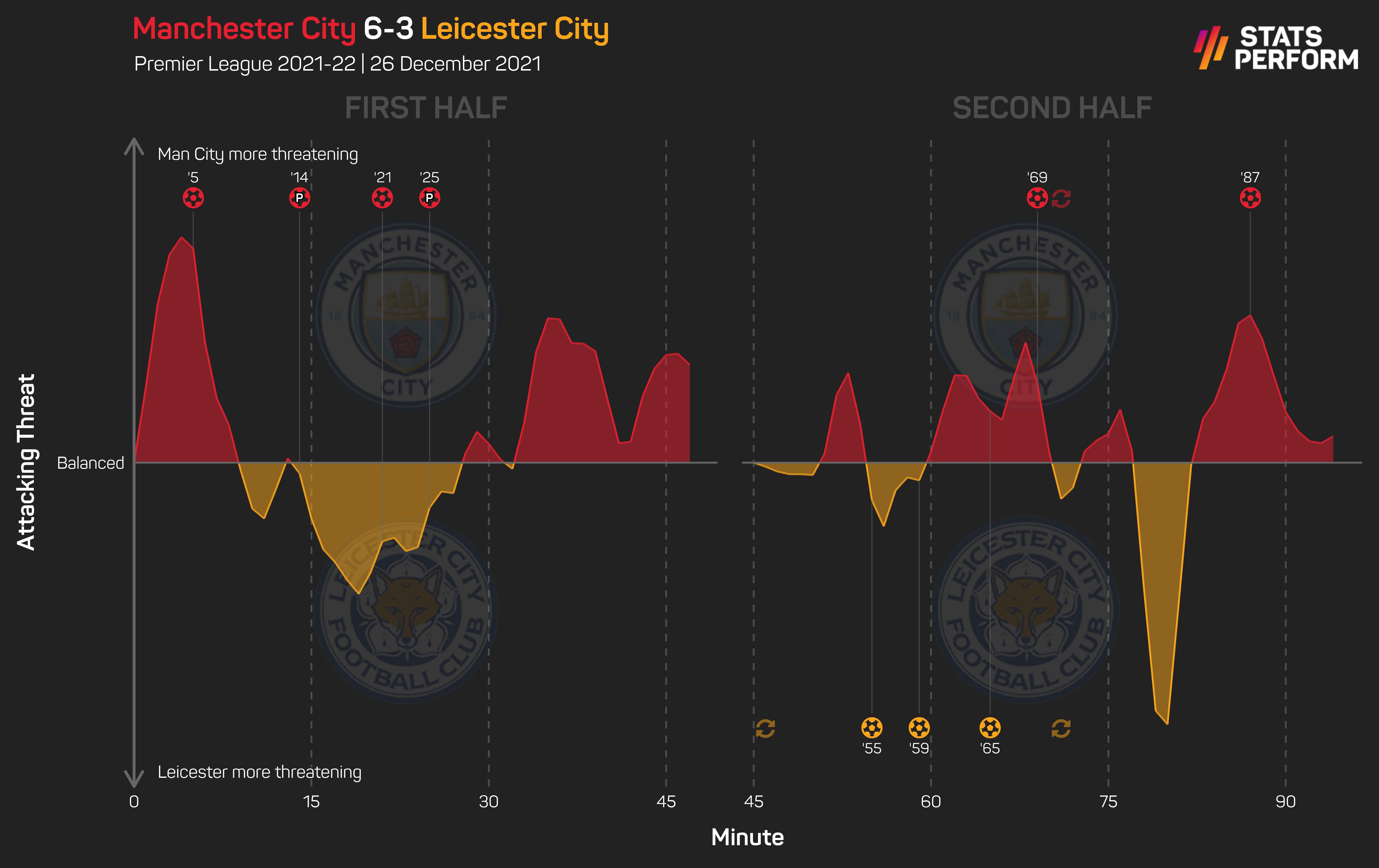 Manchester City mengatasi kebangkitan yang direncana Leicester City apabila mengesahkan kemenangan 6-3 dalam aksi Boxing Day penuh mengujakan di Stadium Etihad lewat malam tadi.