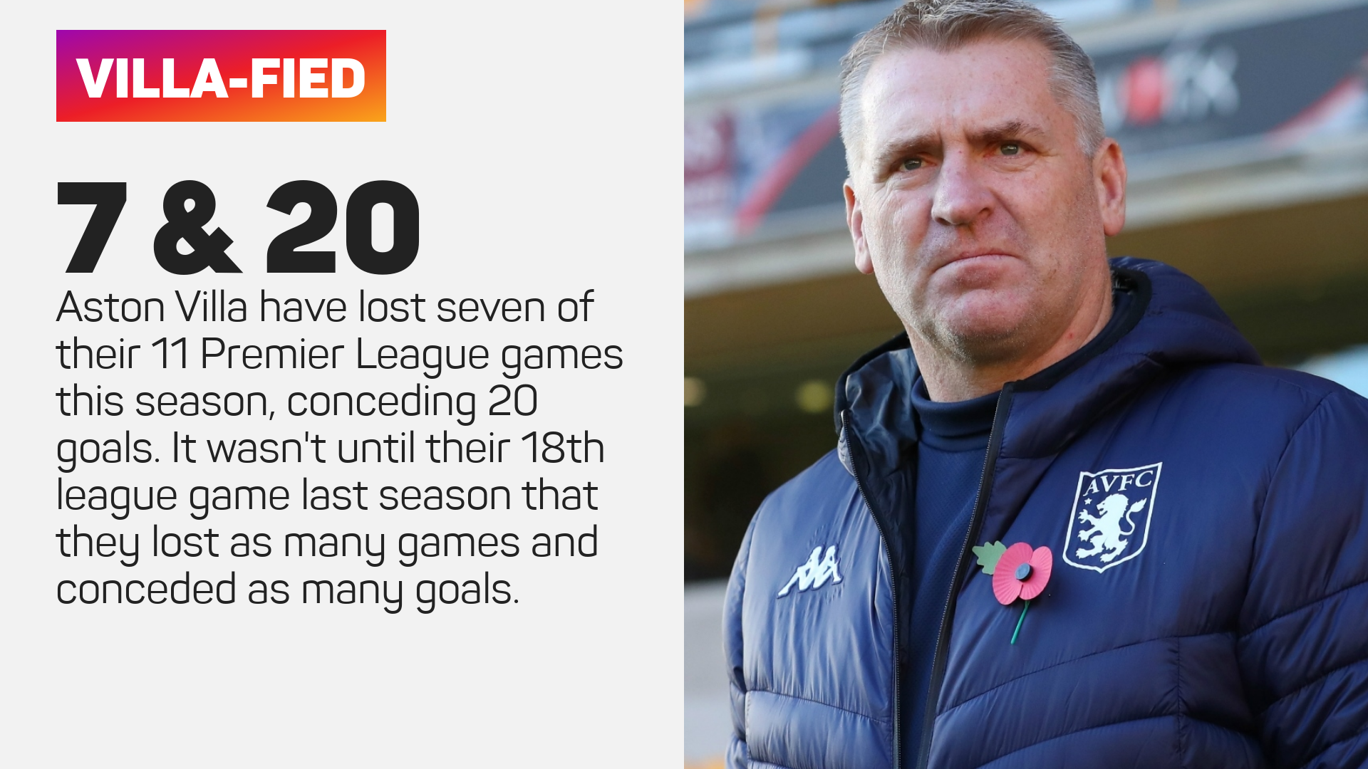 Bekas pengendali Brentford itu menghabiskan tiga tahun di Villa Park dan berhasil membawa kelab zaman remajanya itu kembali ke EPL sebelum menamatkan musim lalu di tangga ke-11.