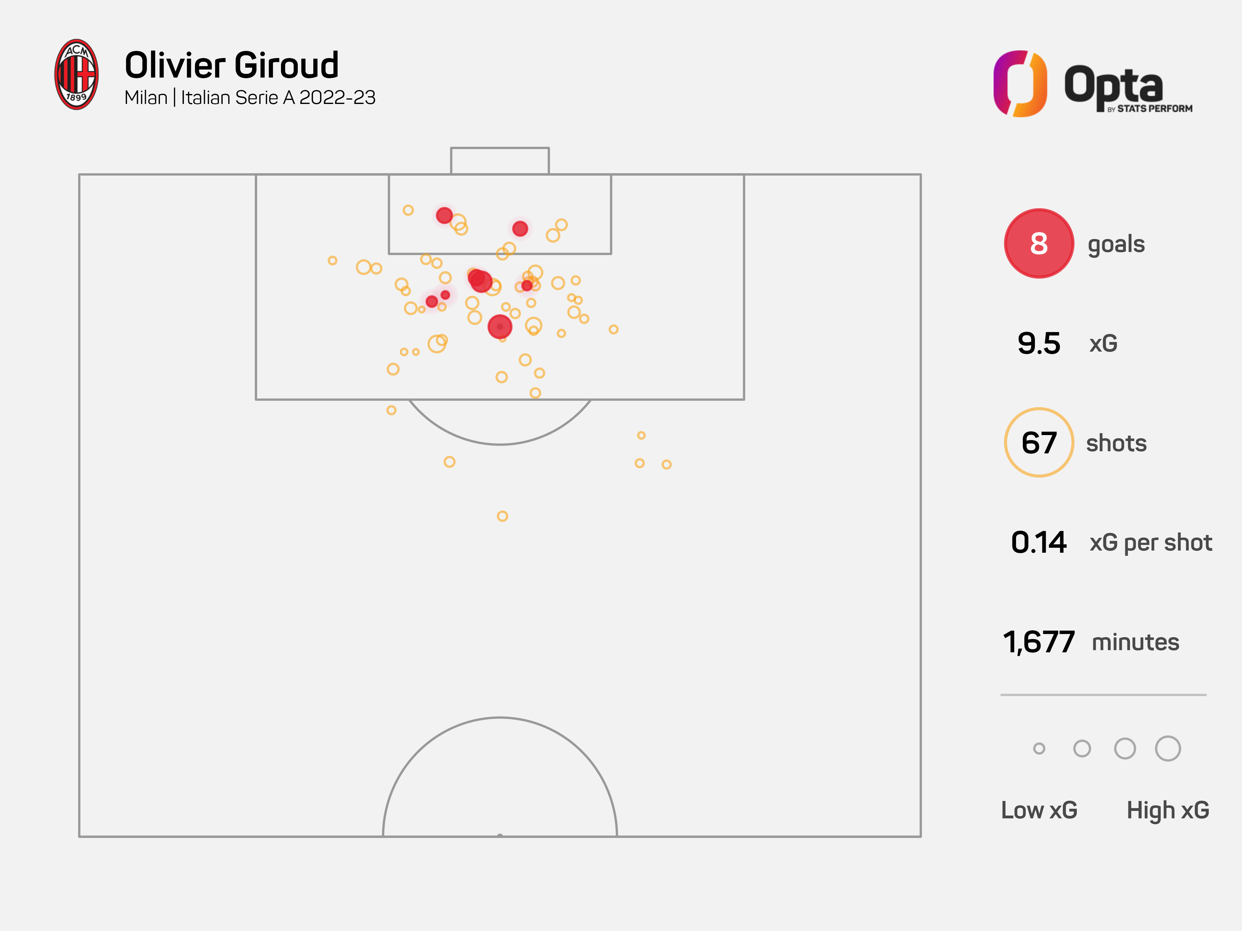 Giroud menyertai Milan daripada Chelsea pada 2021 dan telah meledak 27 gol dalam 76 penampilan.