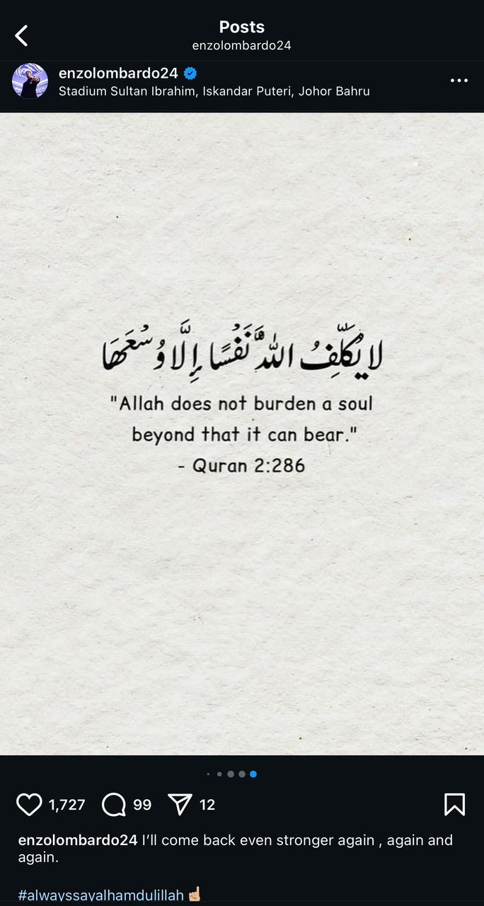 Dia dalam satu hantaran di Instagram memberi bayangan terpaksa melupakan beberapa aksi bersama skuad kendalian Xisco Munoz dengan sasaran bakal bangkit selepas ini.