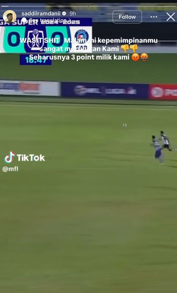 Susulan keputusan seri 2-2 berdepan Terengganu dalam perlawanan Liga Super Malaysia, pemain sayap Indonesia, Saddil Ramdani, tidak berpuas hati dengan sistem mutu pengadilan yang dikendalikan di Gong Badak, semalam.