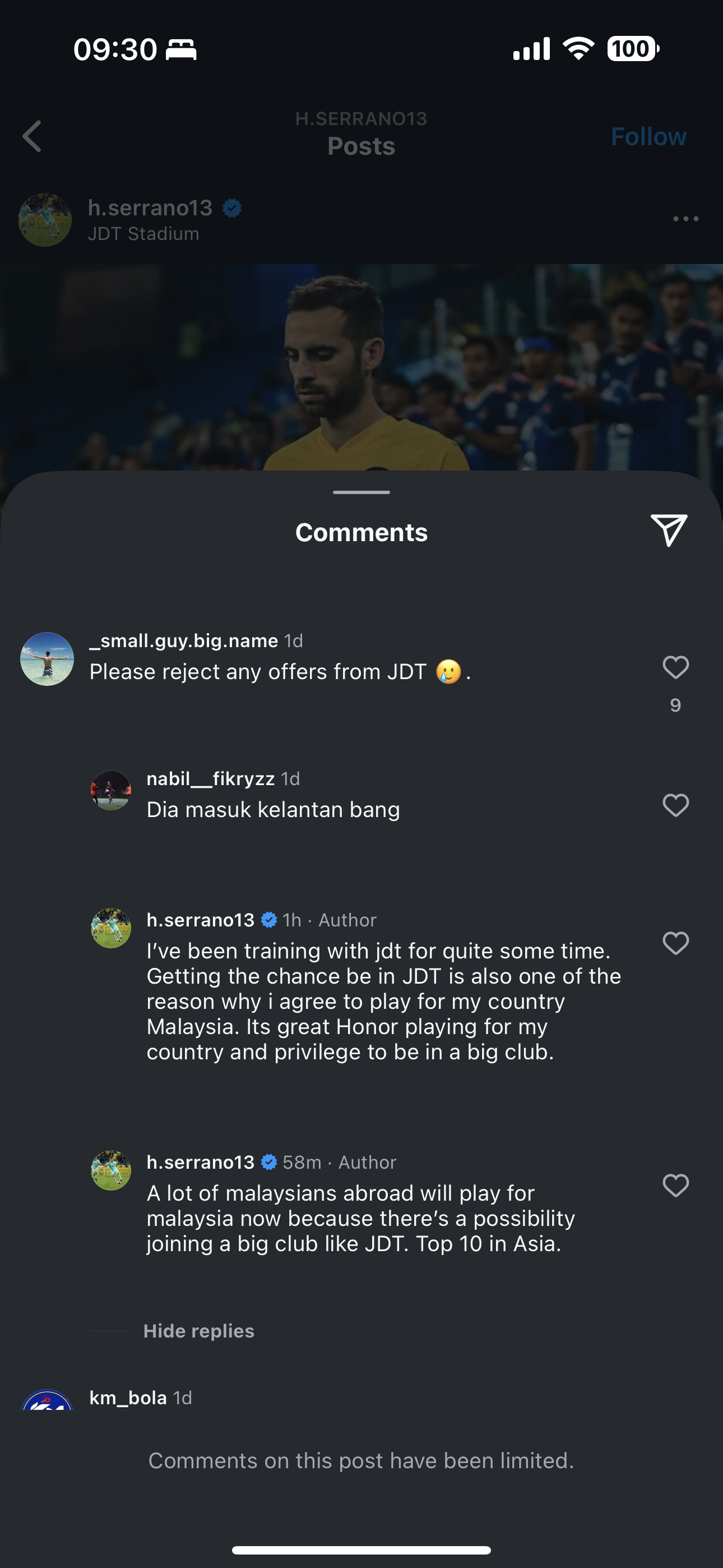 "Ada masa saya pernah berlatih bersama JDT," katanya di laman Instagram.