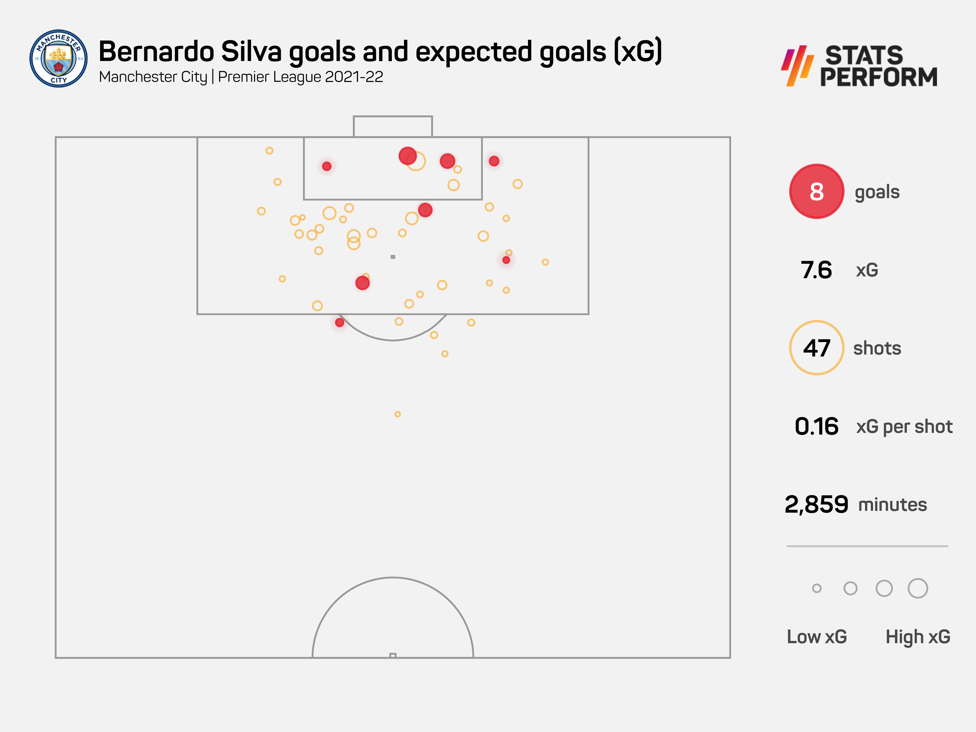 Hanya Kevin de Bruyne (129) dan Jack Grealish (78) mencipta lebih banyak peluang untuk City berbanding Silva (76 kali) musim lalu.