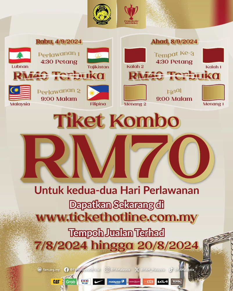 Untuk maklumat lanjut, layari laman sosial FAM untuk sebarang perubahan mengenai tiket perlawanan.