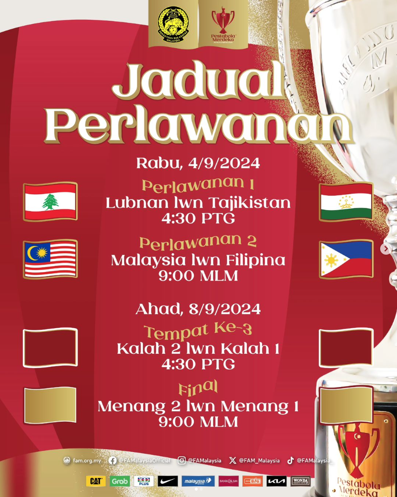 Pestabola Merdeka 2024: Malaysia (2) vs (1) Filipina (Info Siaran Langsung & Live Streaming)