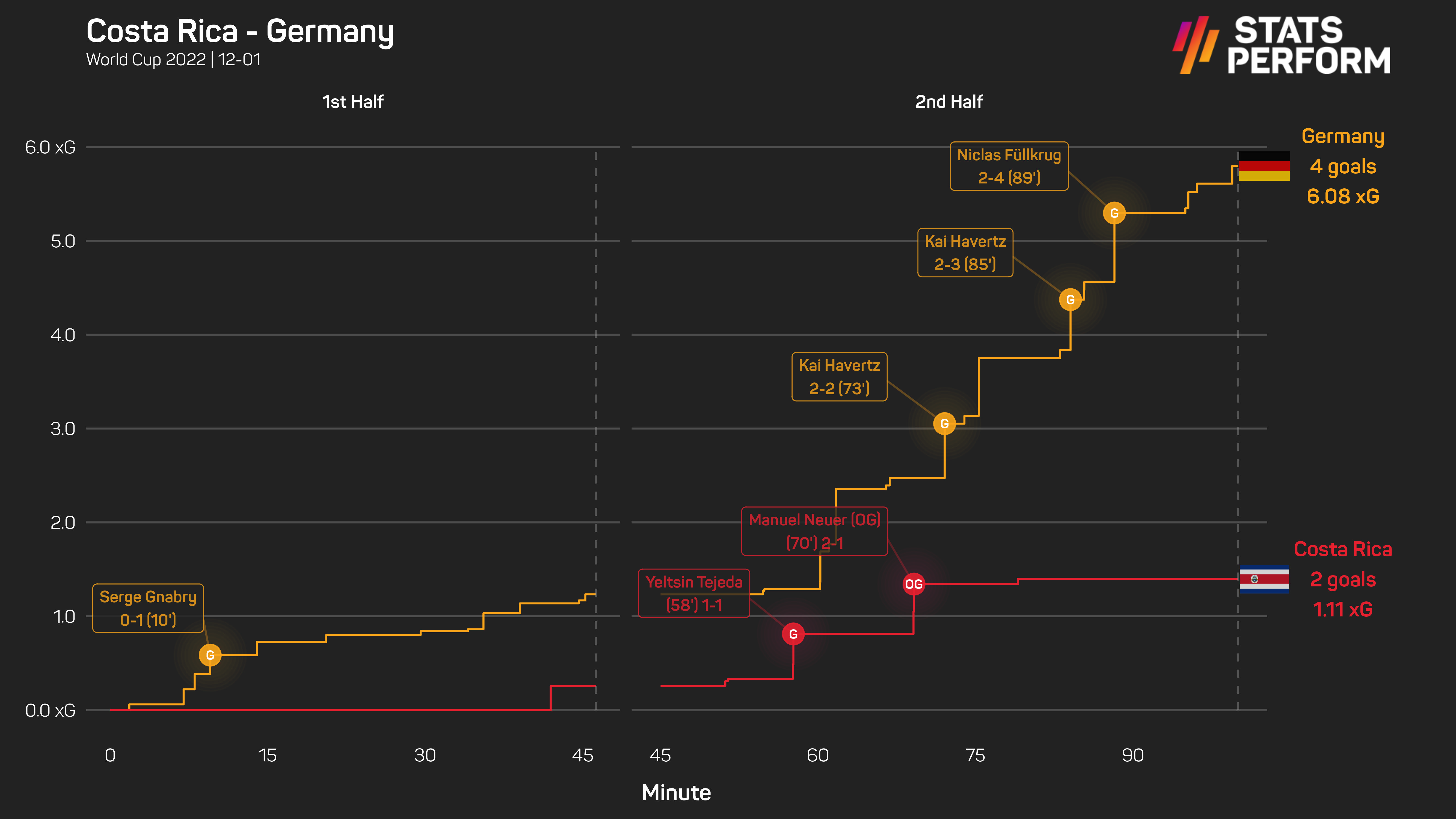 Jerman menewaskan Costa Rica 4-2 dalam kempen Piala Dunia di Qatar awal pagi tadi, tetapi kemenangan di Stadium Al Bayt itu tidak cukup untuk mereka menembusi Kumpulan E berikutan kemenangan mengejut Jepun ke atas Sepanyol.