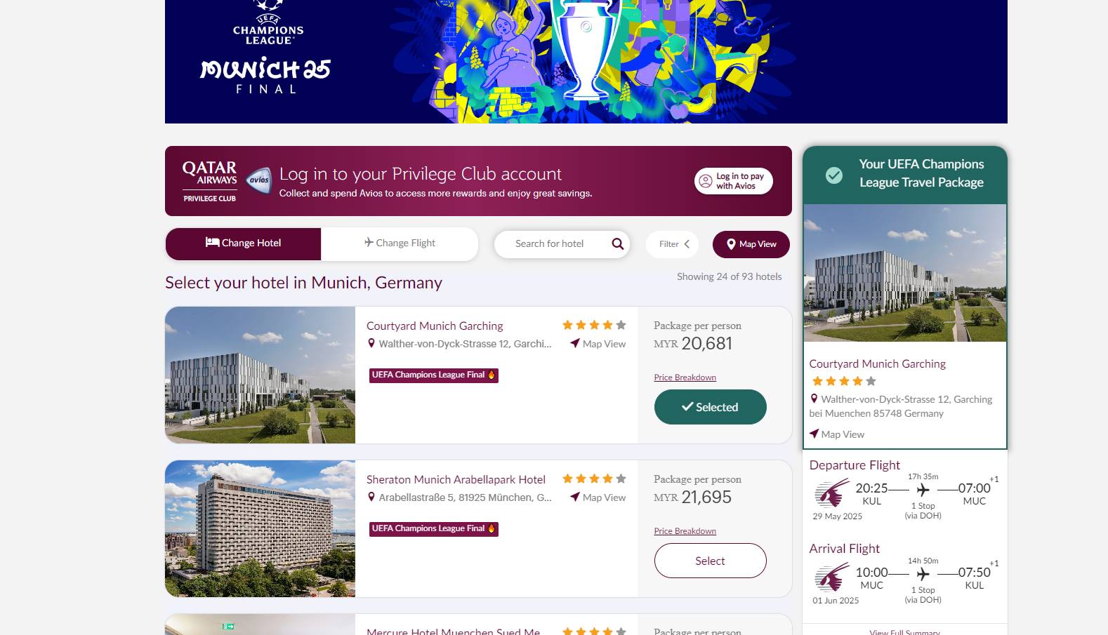 Qatar Airways Holidays menawarkan pakej sekitar RM20,000 untuk peminat bola sepak kelas tertinggi menyaksikan perlawanan itu mendebarkan di Munich itu pada 30 Mei depan dengan cara yang lebih mudah.
