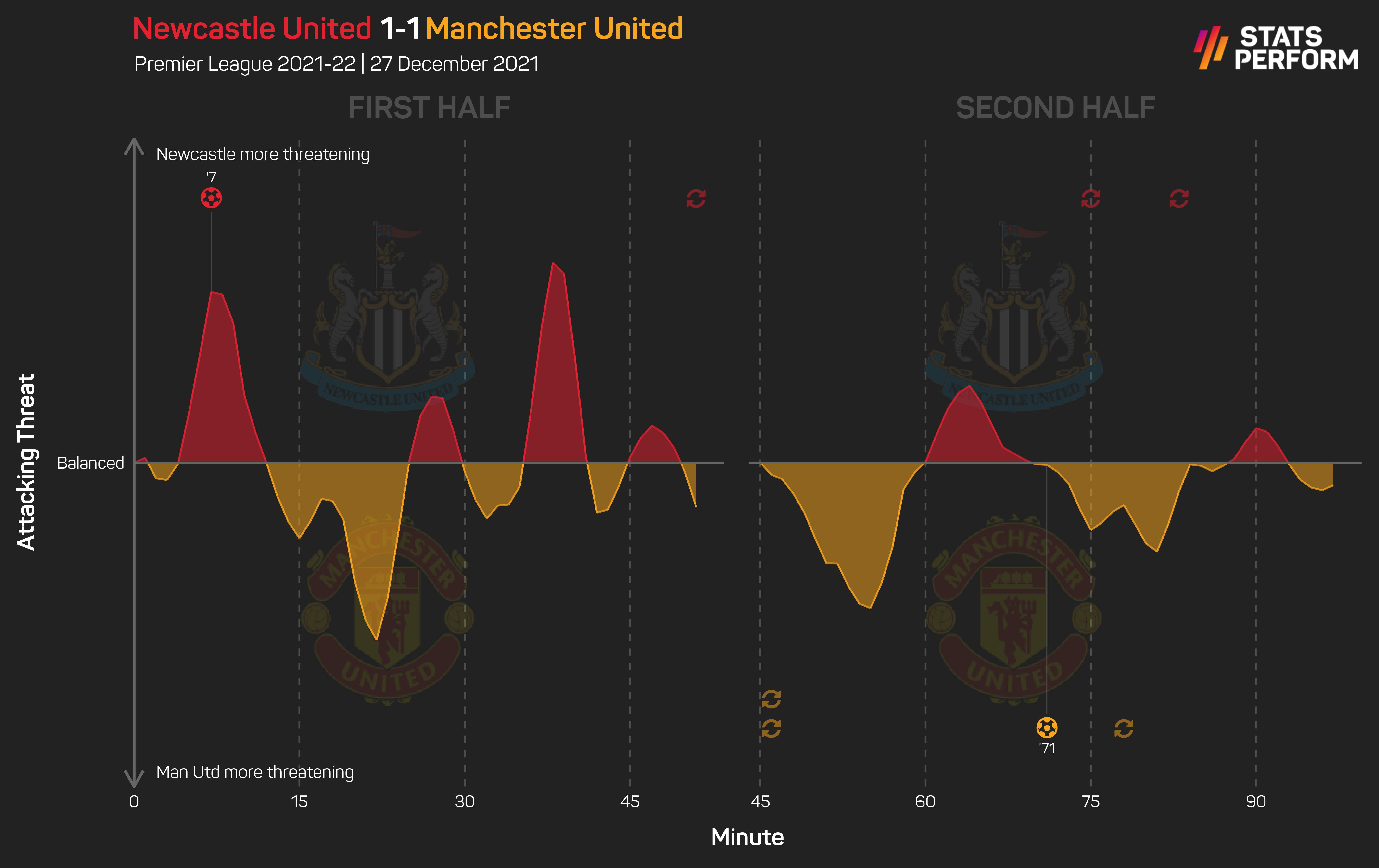 United kelihatan kembali ke prestasi lama mereka seperti sebelum pemecatan Ole Gunnar Solskjaer dan bernasib baik dapat meraih kemenangan tipis ke atas Norwich City dalam perlawanan lalu dan amat bernasib baik dapat berkongsi mata dengan Tyneside kali ini.