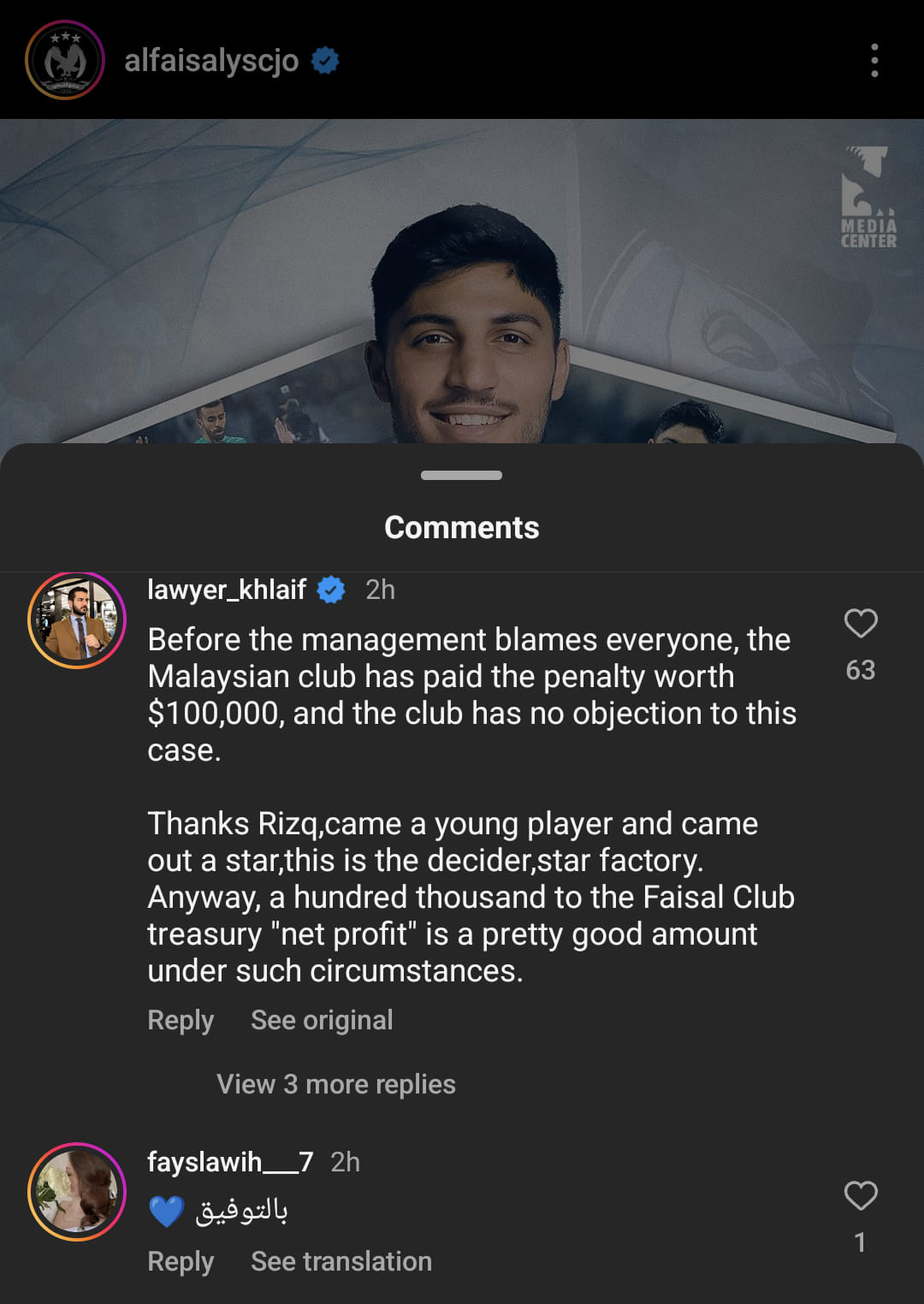Reziq merupakan nadi kelab kelab Jordan, Al Faisaly SC, dan enam kali beraksi dalam Liga Juara-Juara Asia (ACL) musim lalu selain merupakan penjaring terbaik liga Jordan B-17 dan 19.