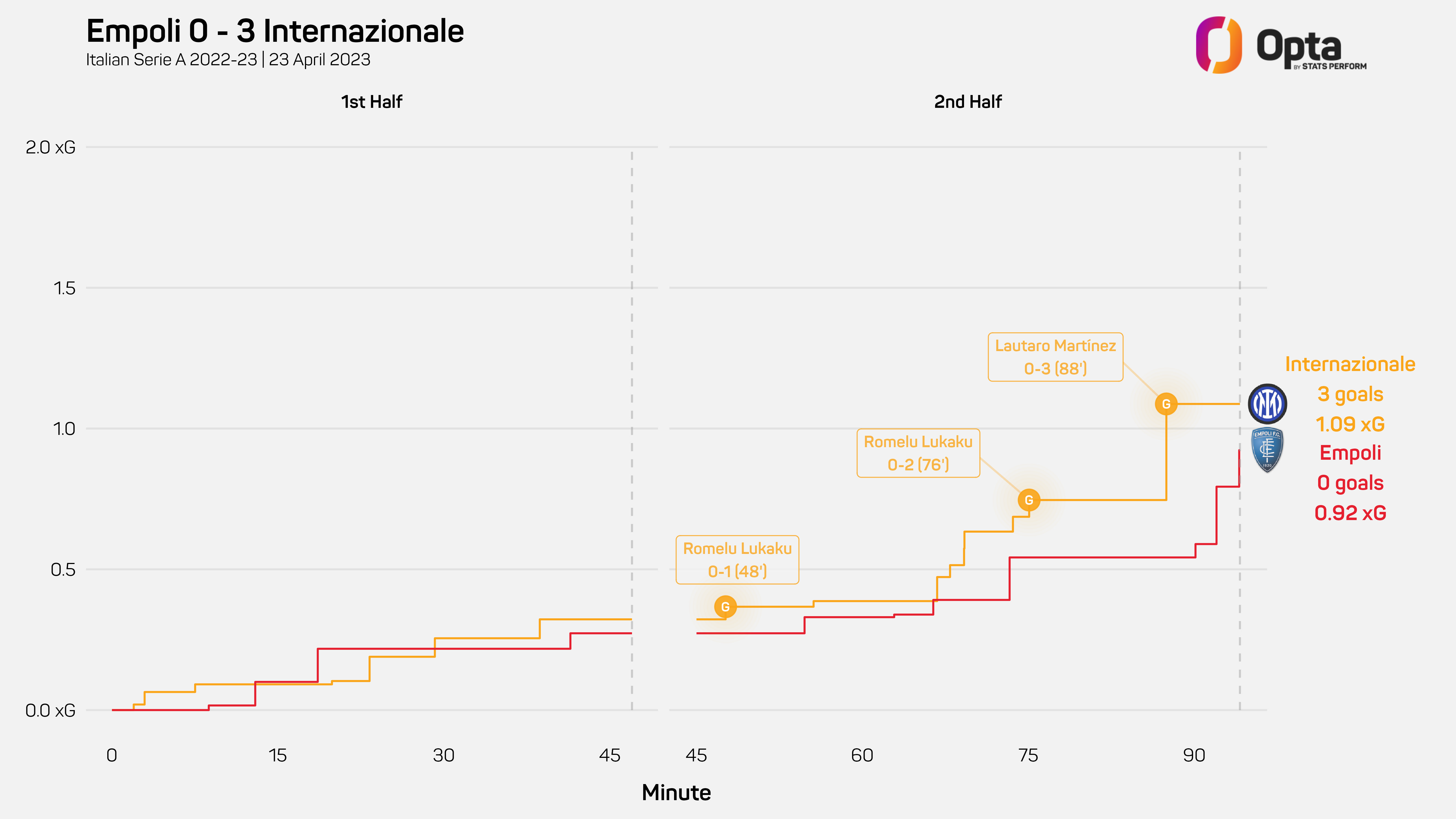Penyerang Belgium itu membuka tirai jaringan perlawanan pada awal separuh masa kedua di Stadio Carlo Castellani dengan penyudah tepat melepasi Samuele Perisan sebelum menggandakan golnya di ruang sempit.