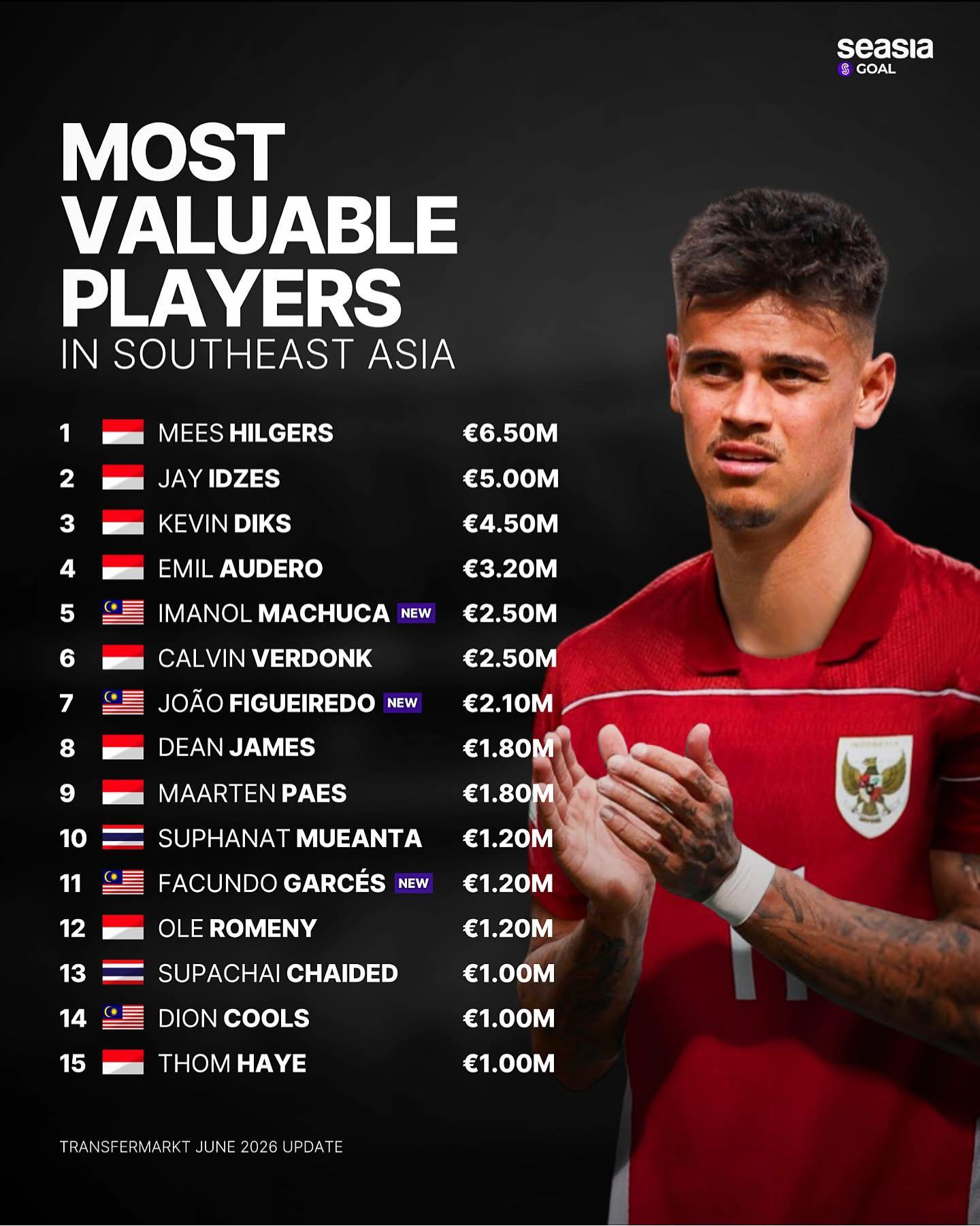 Machuca, bagaimanapun, menduduki tangga kelima dalam senarai pemain termahal Asia Tenggara yang didahului empat pemain Indonesia yang diketuai Mees Hilgers yang beraksi untuk FC Twente dalam kancah Belanda (€6.50j), Jay Idzes (€5j), Kevin Diks (€4.5j).