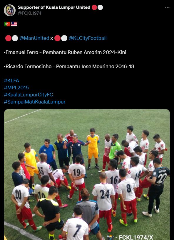 Sebelum ini, Ricardo Formosinho yang merupakan pengendali Kuala Lumpur pada 2014 turut menjadi sebahagian daripada skuad Man United pada 2016 ketika bersama Jose Mourinho selaku ketua jurulatih dan berjaya memenangi satu gelaran iaitu Liga Europa (UEL).