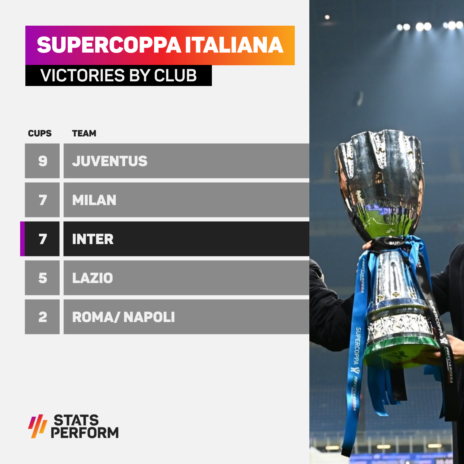 Pemenang Coppa Italia musim lalu itu menambah gol ketiga menerusi sentuhan Lautaro Martinez pada minit ke-77, sekali gus memenangi gelaran Supercoppa ketujuh dan menyamai rekod Milan di tangga kedua senarai pemenang terbanyak di belakang Juventus (sembilan).