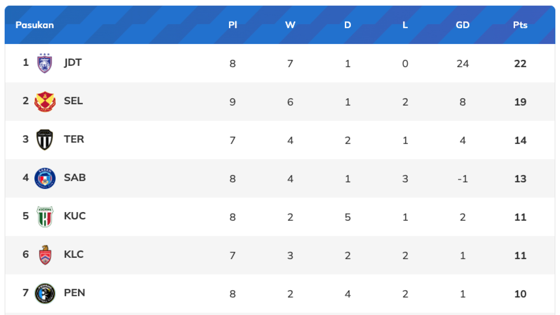 Maklumat lengkap kedudukan Liga Super Malaysia klik di sini.