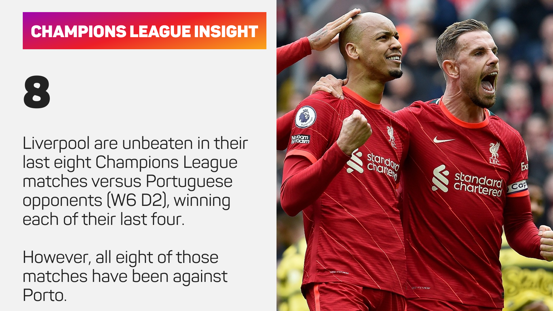 The Reds juga menang keempat-empat perlawanan di tempat lawan dalam pertandingan utama Eropah itu musim ini dan hanya sekali, iaitu ketika di bawah bimbingan Joe Fagan mereka pernah memenangi lima rentetan perlawanan sekitar tahun 1983 dan 1984.