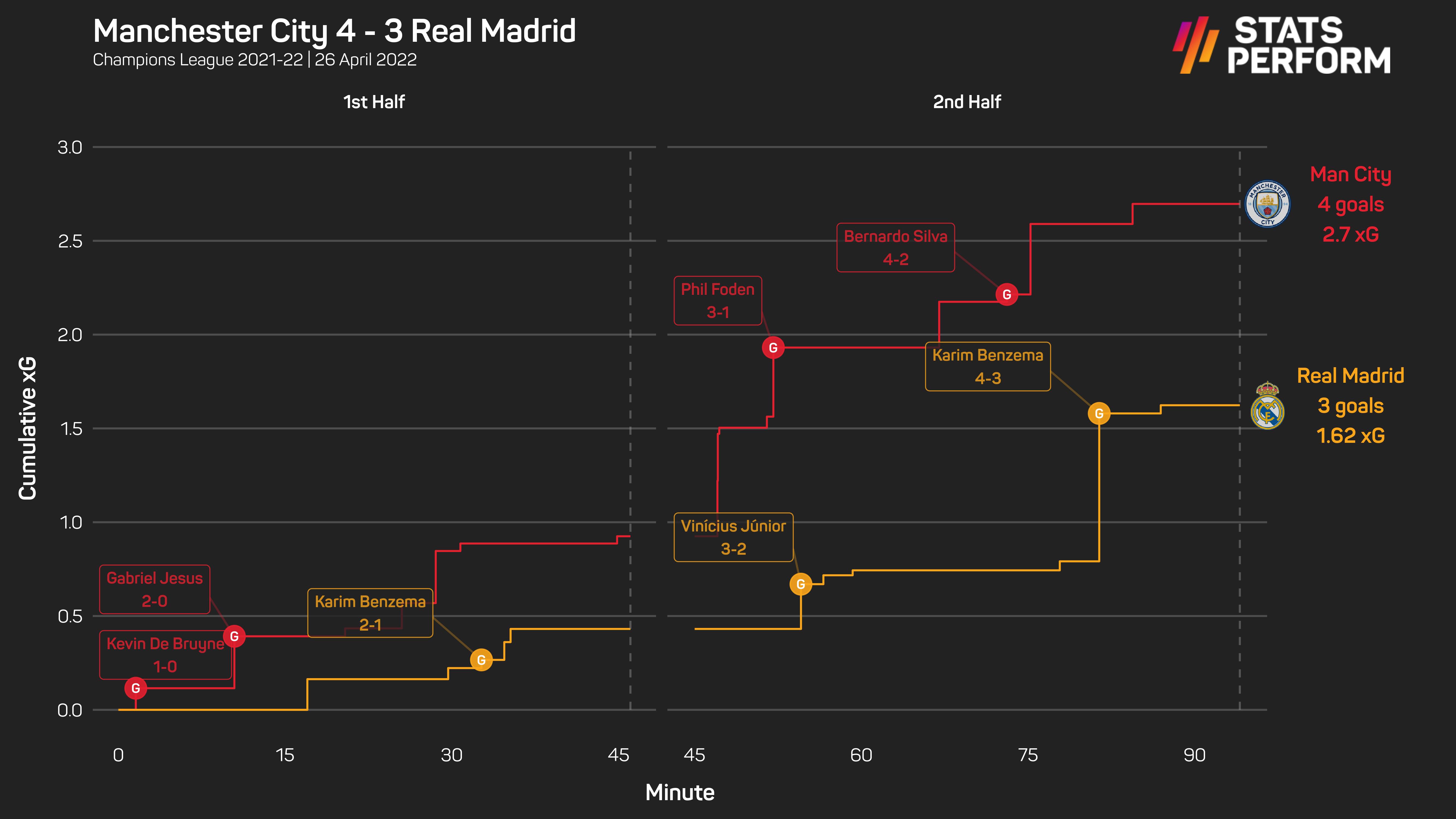 Juara Liga Perdana Inggeris (EPL), City, membawa kelebihan tipis 3-4 daripada perlawanan itu ke Santiago Bernabeu dan telah memenangi sembilan daripada 10 penentuan kalah mati UCL selepas memenangi pertemuan timbal balik pertama.