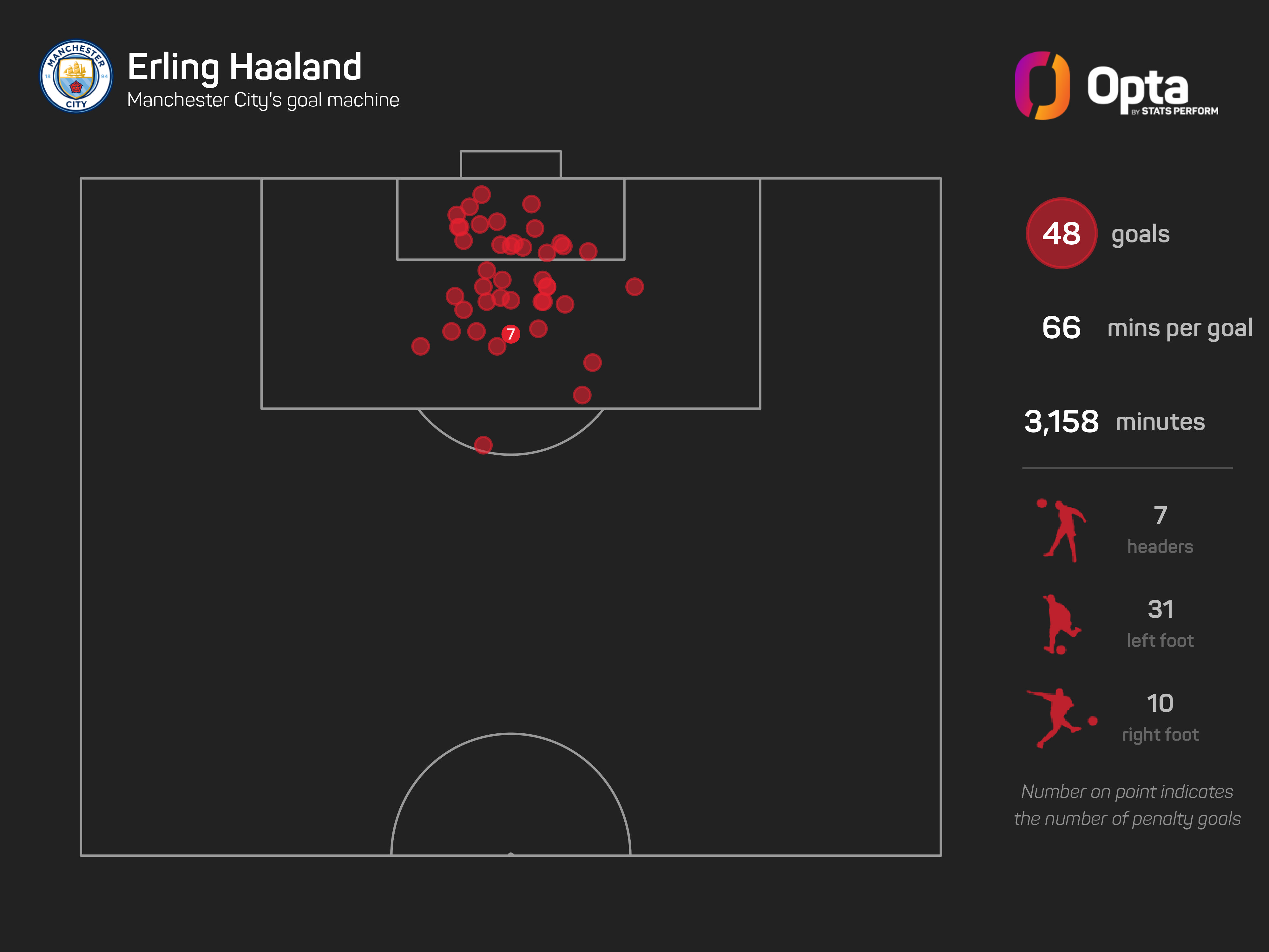 Erling Haaland yang gagal menyempurnakan sepakan penalti dalam separuh masa pertama menebus kehampaan itu dengan gol ke-48 peribadinya musim ini untuk memecah kebuntuan selepas rehat.
