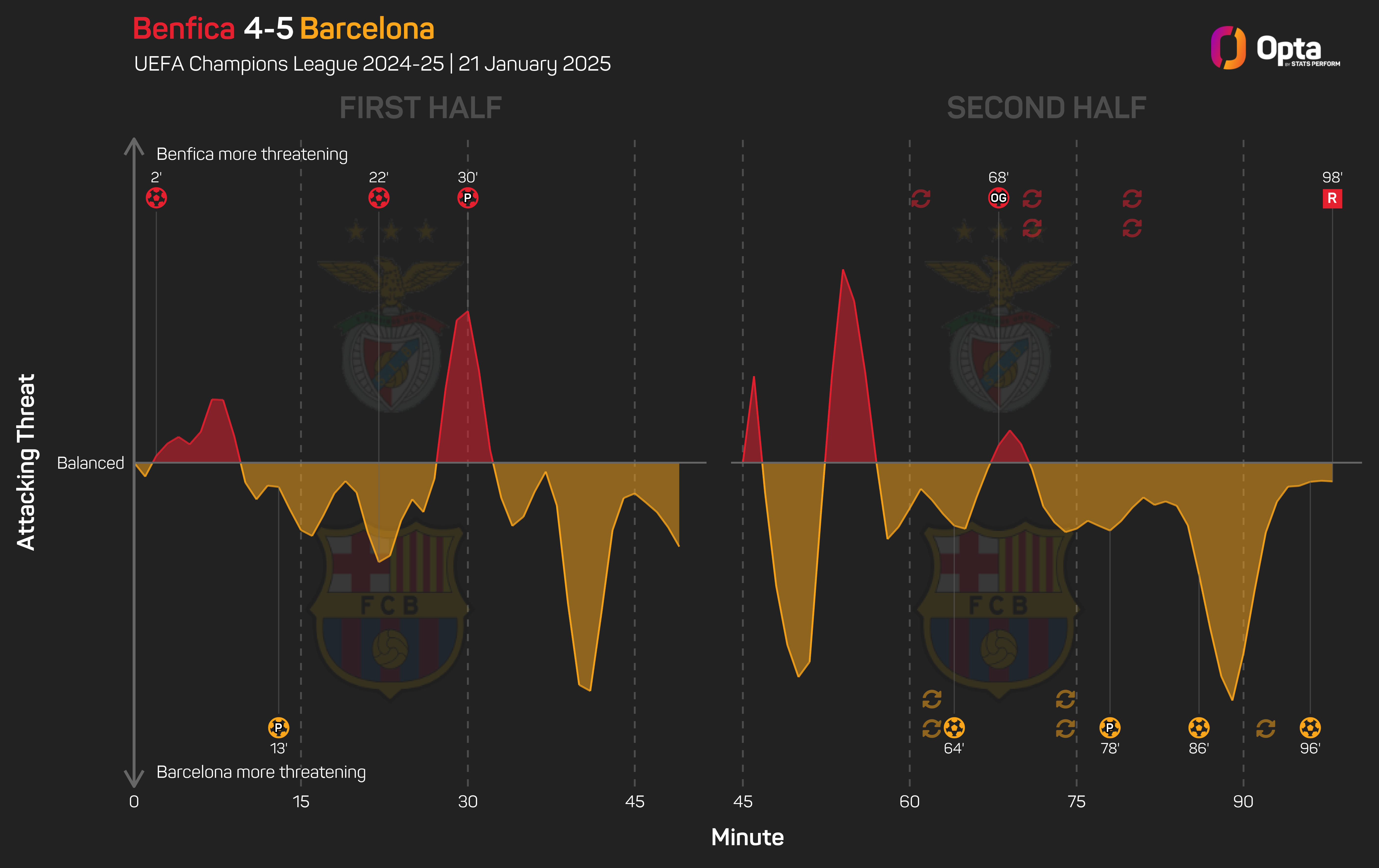 Gol kemenangan Raphinha -– rembatan rendah dalam satu serangan balas sejurus selepas rayuan sepakan penalti Benfica dibatalkan pada minit ke-95 minit dan 8 saat.