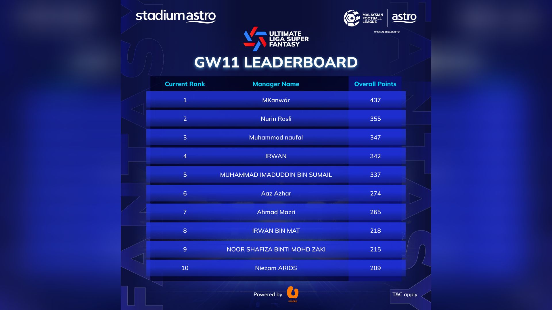 Rancang kesebelasan utama terbaik anda sekarang bagi merebut mata tertinggi untuk menjadi pendahulu carta Ultimate Liga Super Fantasy 2024.