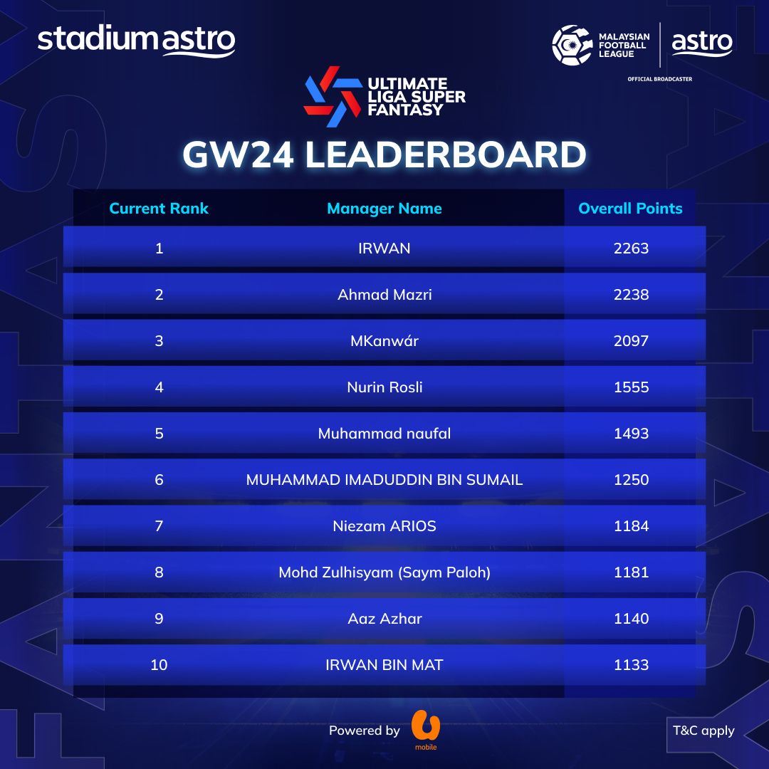 Menjelang saingan minggu ke-25 Liga Super 2024/25, rancang kesebelasan terbaik anda di Ultimate Liga Super Fantasy sebagai pengurus untuk mengumpul mata bagi merebut hadiah kejuaraan.