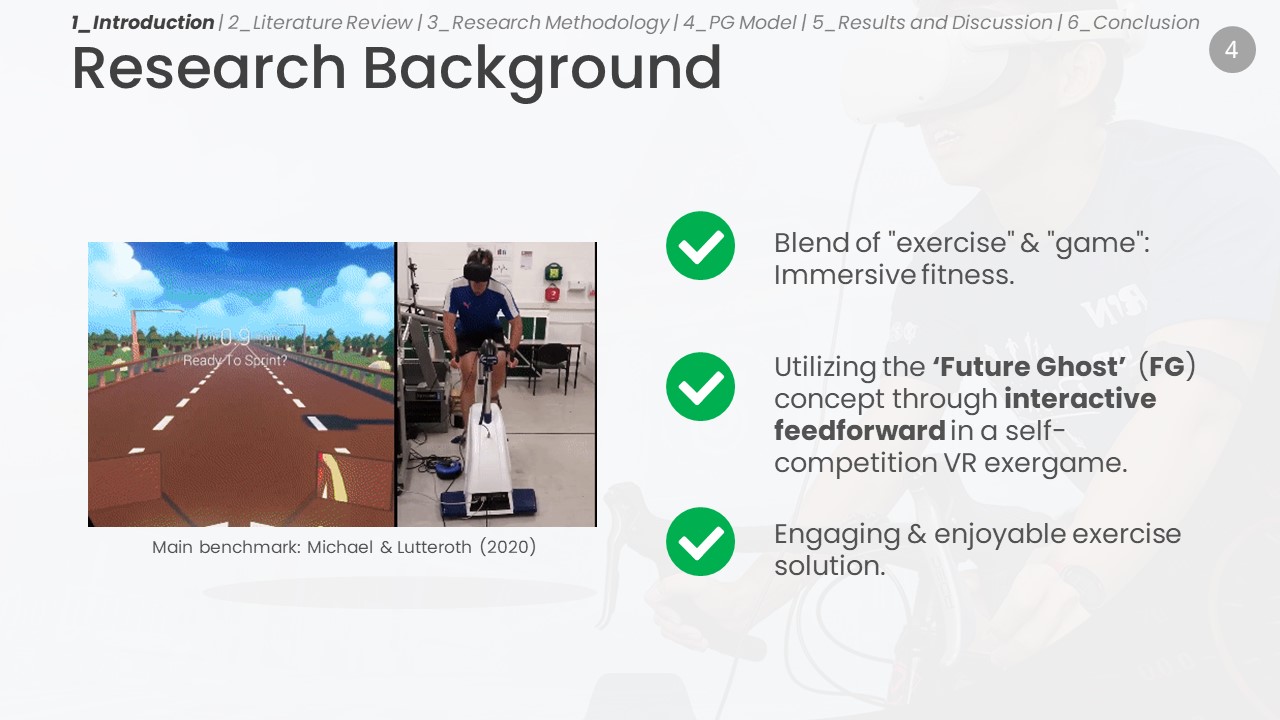 Kajian PhD oleh pelajar UTM terhadap Future Ghost Concept dalam latihan sukan melalui aplikasi Virtual Reality Exergames juga membolehkan sistem gamification untuk mengenalpasti tahap kemampuan atlet dari masa ke semasa.