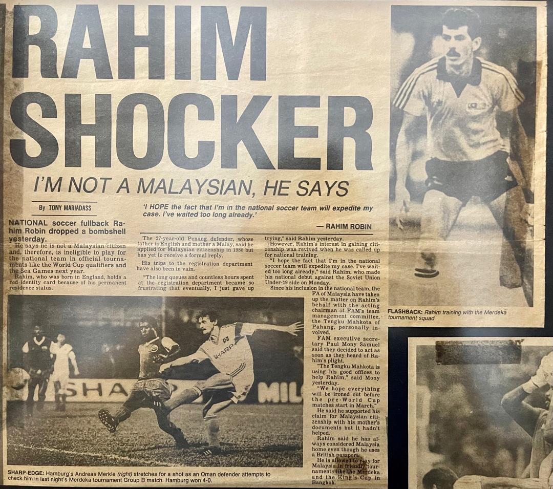“Ketika itu saya beraksi untuk skuad negara dalam Pestabola Merdeka pada Disember 1988. Saya berharap apabila terpilih, ia akan mempercepatkan proses permohonan kerakyatan saya,” katanya yang memohon status kewarganegaraan sejak 1980.