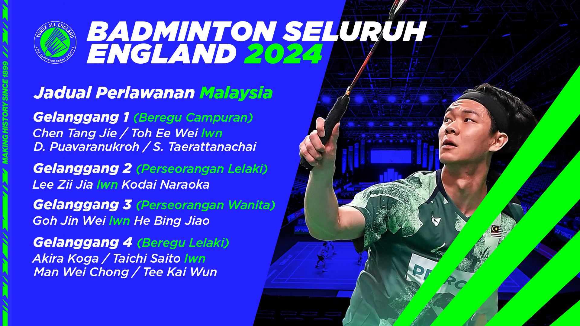 Chen Tang Jie-Toh Ee Wei, Lee Zii Jia, Goh Jin Wei serta Man Wei Chong-Tee Kai Wun akan mula mengatur langkah mereka di Birmingham.