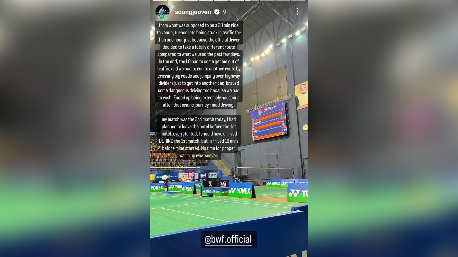 Soong Joo Ven mendedahkan dia berdepan detik mencemaskan untuk sampai ke stadium bagi menghadapi perlawanan dalam Kejohanan Badminton Antarabangsa India Syed Modi yang disifatkan oleh pemain Malaysia itu sebagai berbahaya dan telah membuatkannya berasa mual.