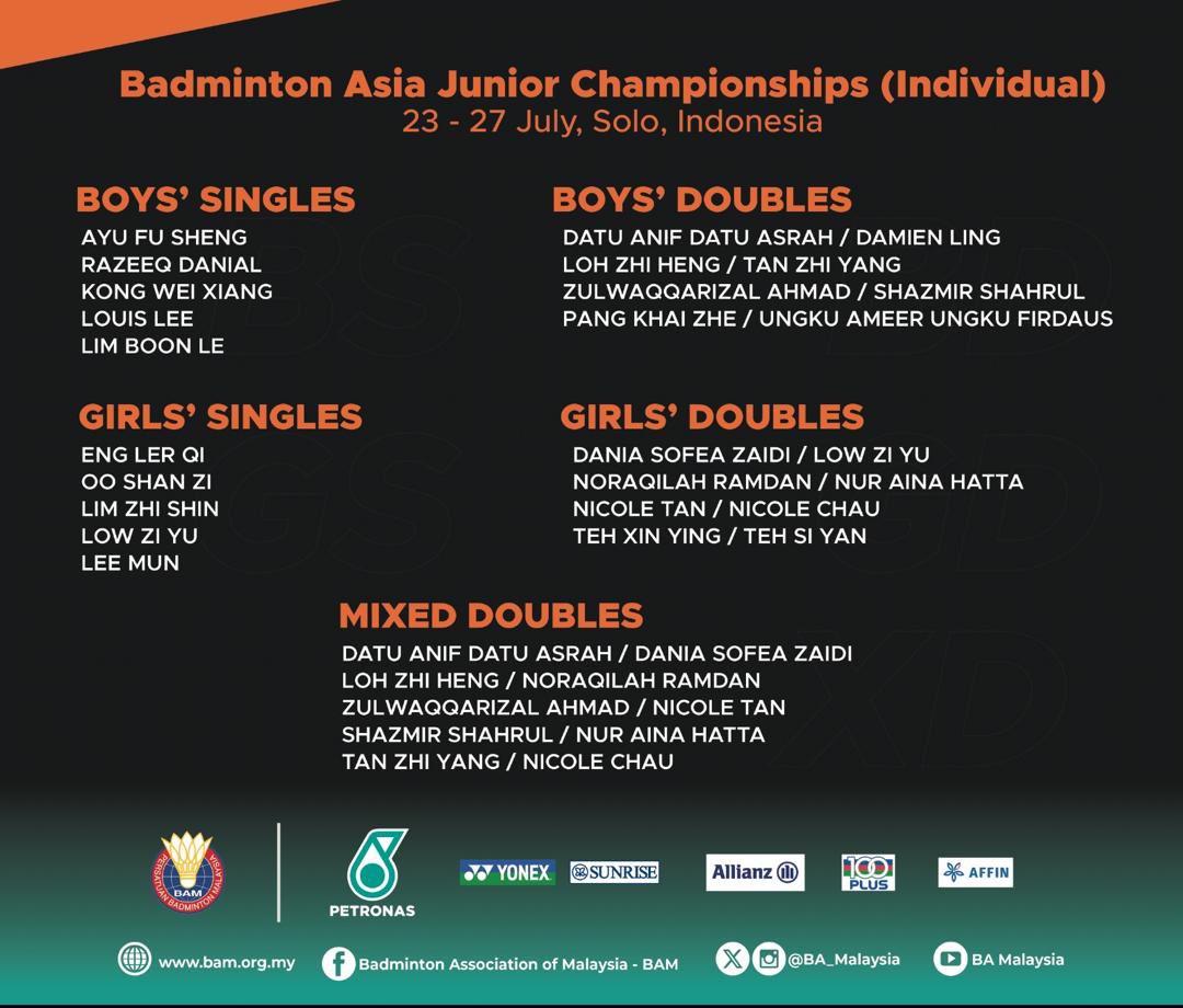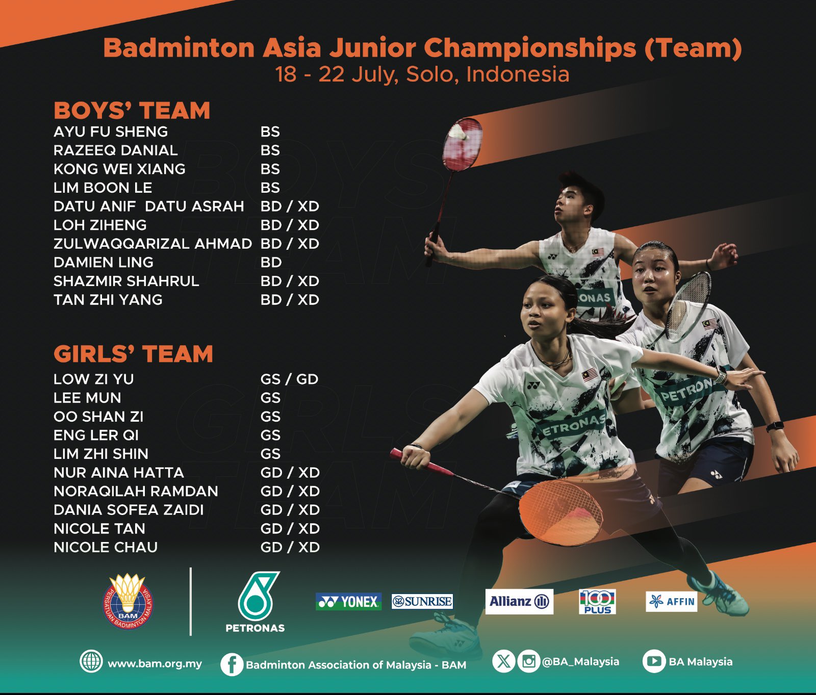 Persatuan Badminton Malaysia (BAM) hari ini mengumumkan senarai akhir barisan skuad remaja yang akan menyertai Kejohanan Badminton Remaja Asia nanti.