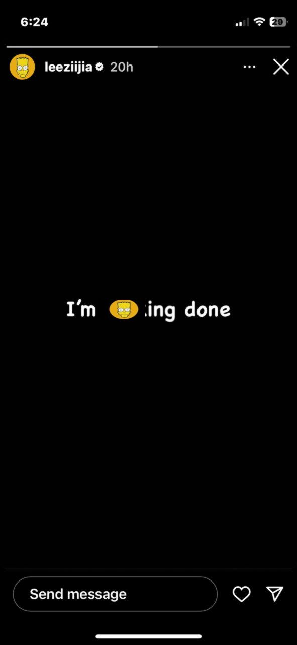 "I'm f*****g done (saya sudah selesai)," tulis Zii Jia di InstaStory miliknya.