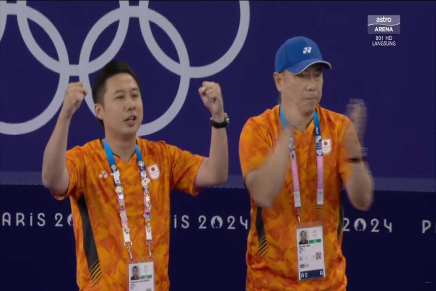 Jeremy Gan dan Tan Kim Her memainkan peranan penting sebagai jurulatih yang mengiringi kejayaan beregu campuran nombor satu Jepun, Yuta Watanabe-Arisa Higashino, memenangi pingat gangsa Sukan Olimpik Paris 2024, di Arena Porte de La Chapelle, sebentar tadi.
