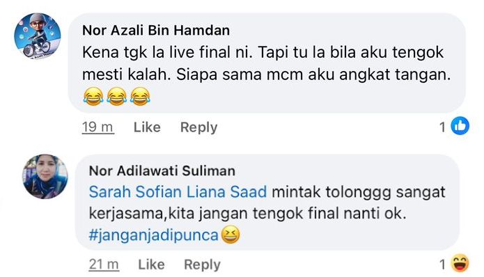 Bagaimanapun saya sempat membaca respon yang ditinggalkan peminat sukan badminton di ruangan komen -– tidak sangka pula ramai yang senasib dengan saya -– takut nak tengok, nanti kalah.